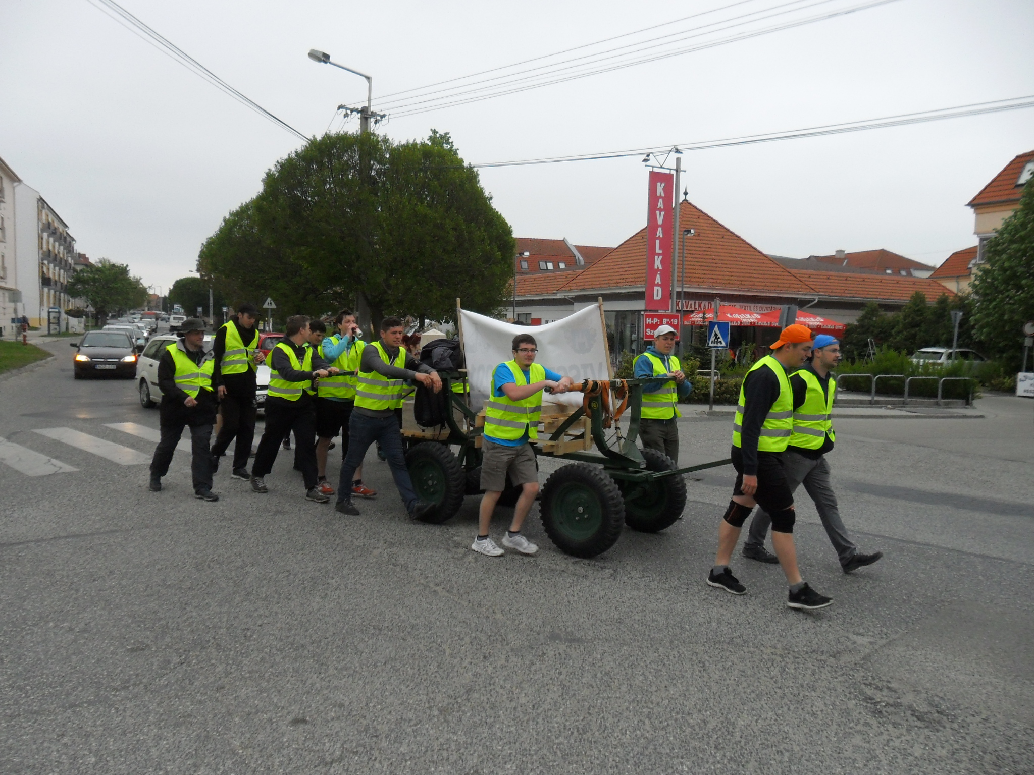 Aki szerdán este, vagy csütörtökön reggel járt a városban, találkozhatott néhány fiatallal, akik láthatósági mellényben egy furcsa kis kocsit tolnak.