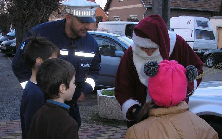 Az ajándékozás közben szóba kerültek az úttesten történő átkelés szabályai, a kerékpár kötelező felszerelései, valamint a rendőrök kihangsúlyozták a láthatósági mellény és a biztonsági öv használatának fontosságát is.
