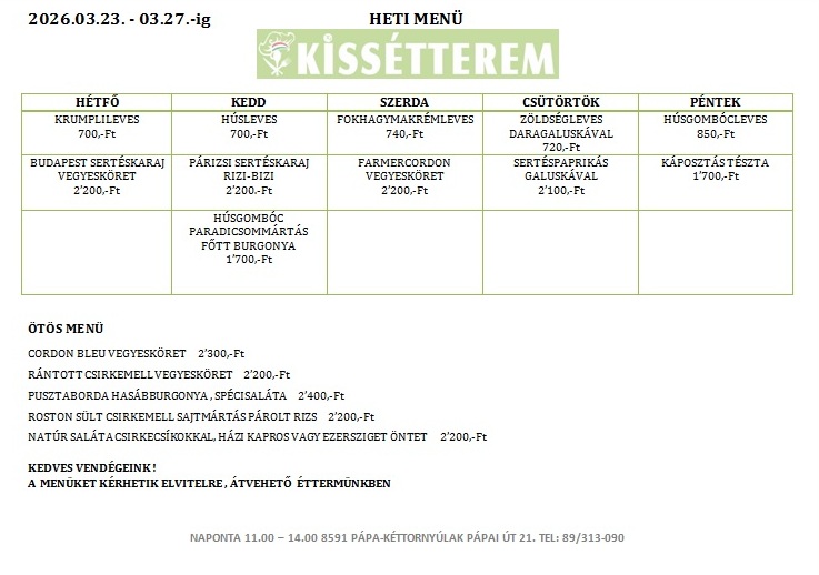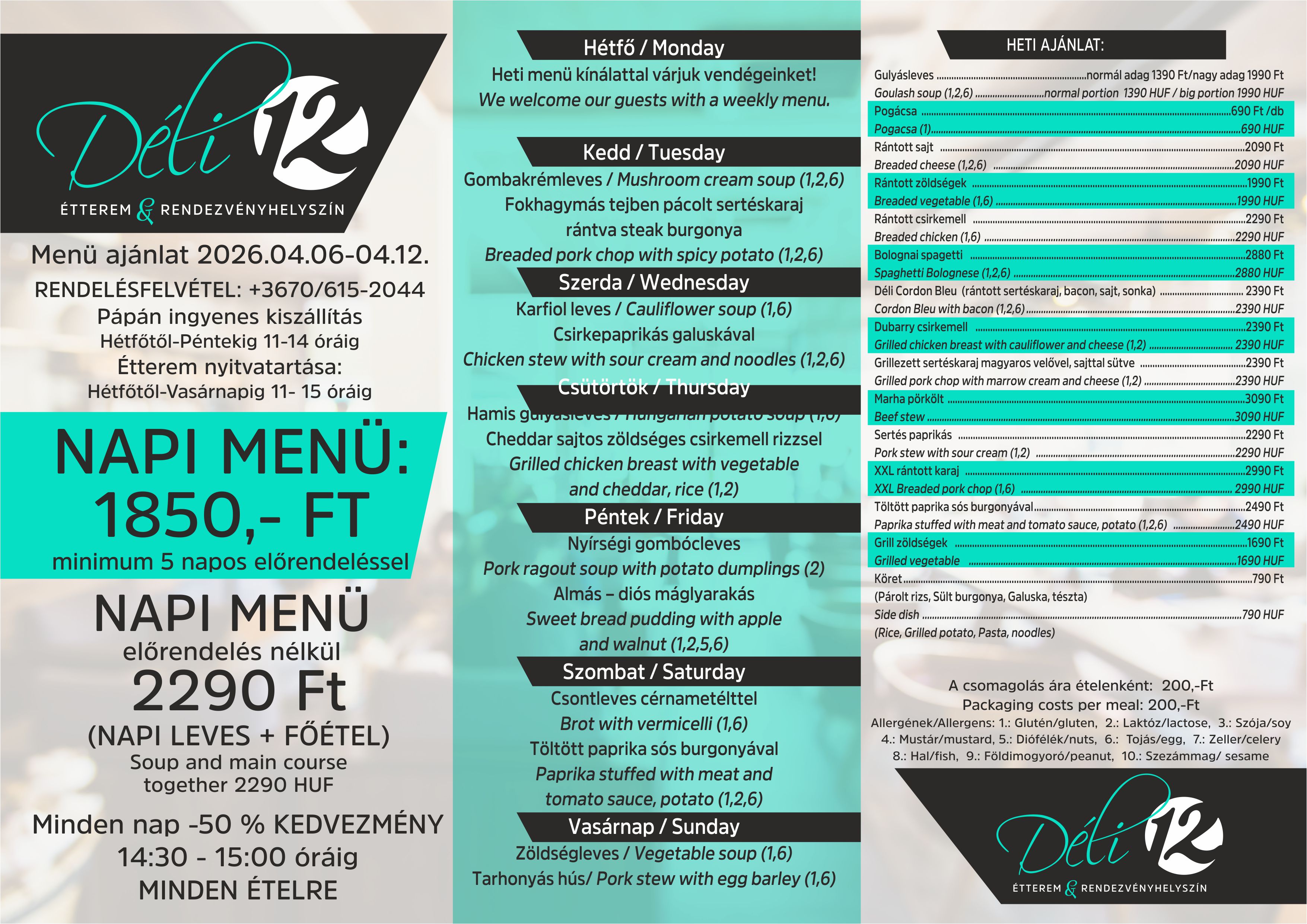 Aktuális étlapunk! Rendelj kiszállítással! megtekintése