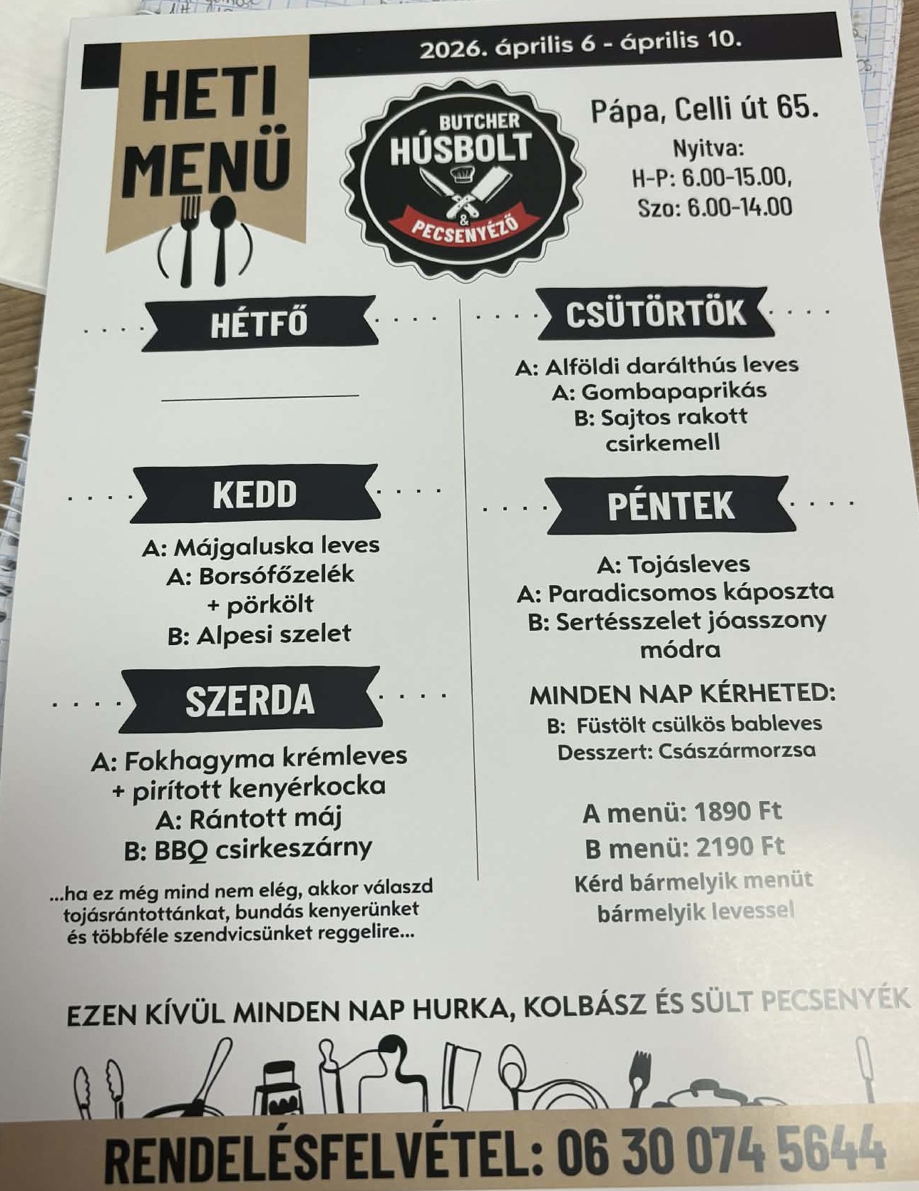Butcher Húsbolt & Pecsenyéző - Pápa