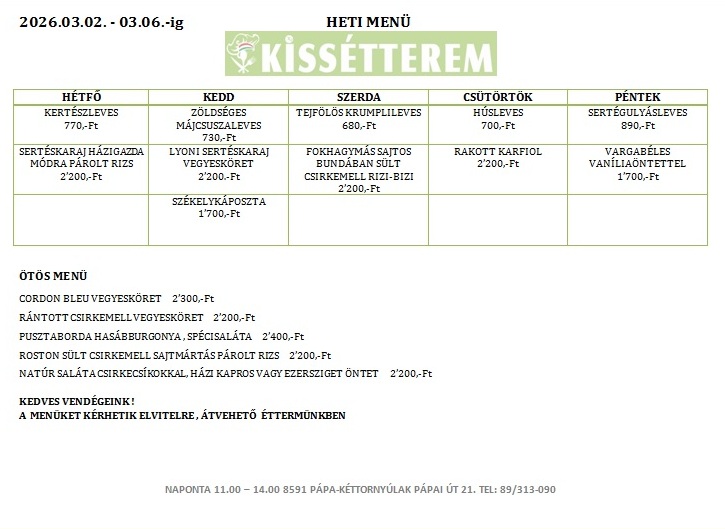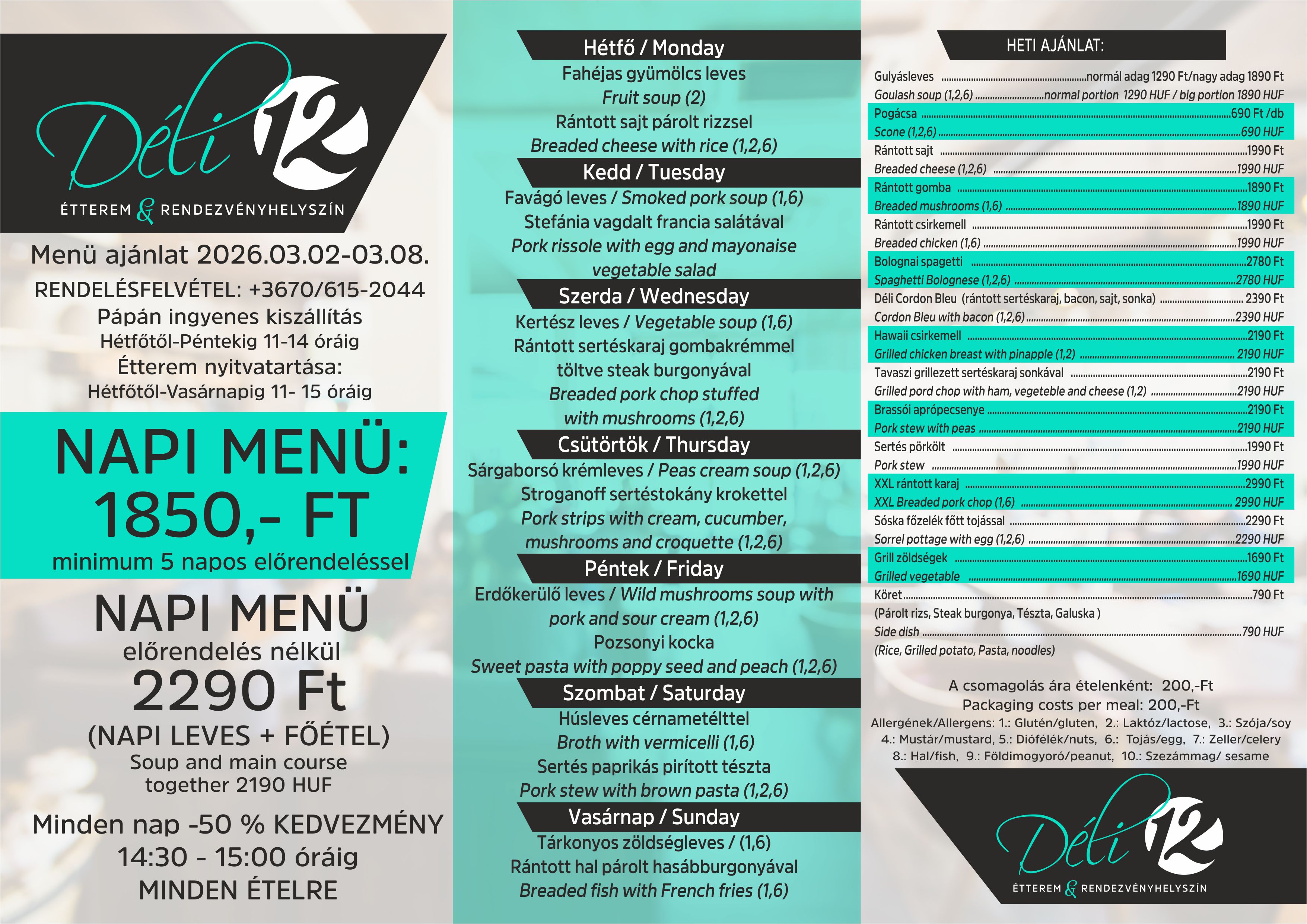 Aktuális étlapunk! Rendelj kiszállítással! megtekintése
