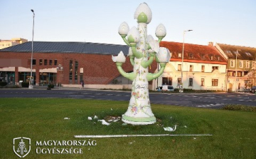 Újabb rongálás történt a Fő téren, ezúttal Eszterházy Károly városépítő püspök szobrának talapzatát firkálták össze.