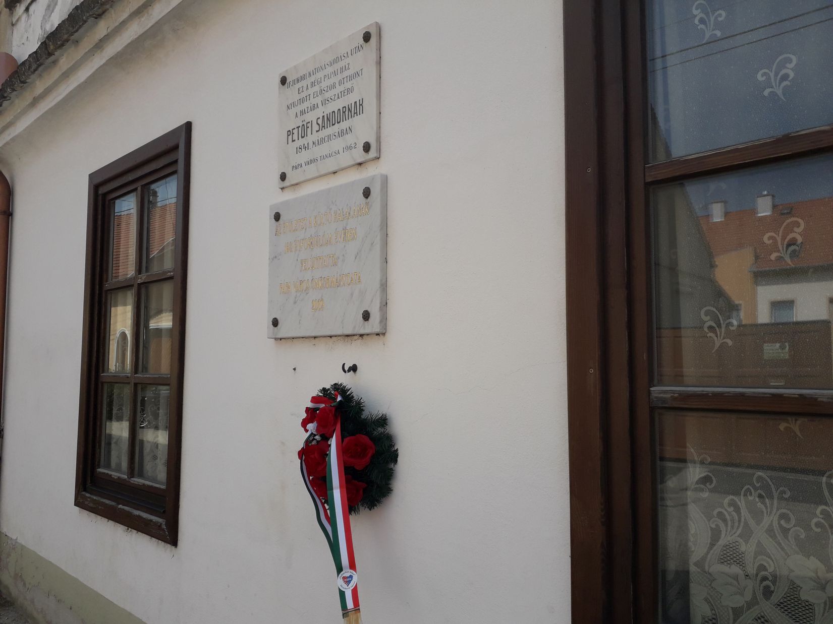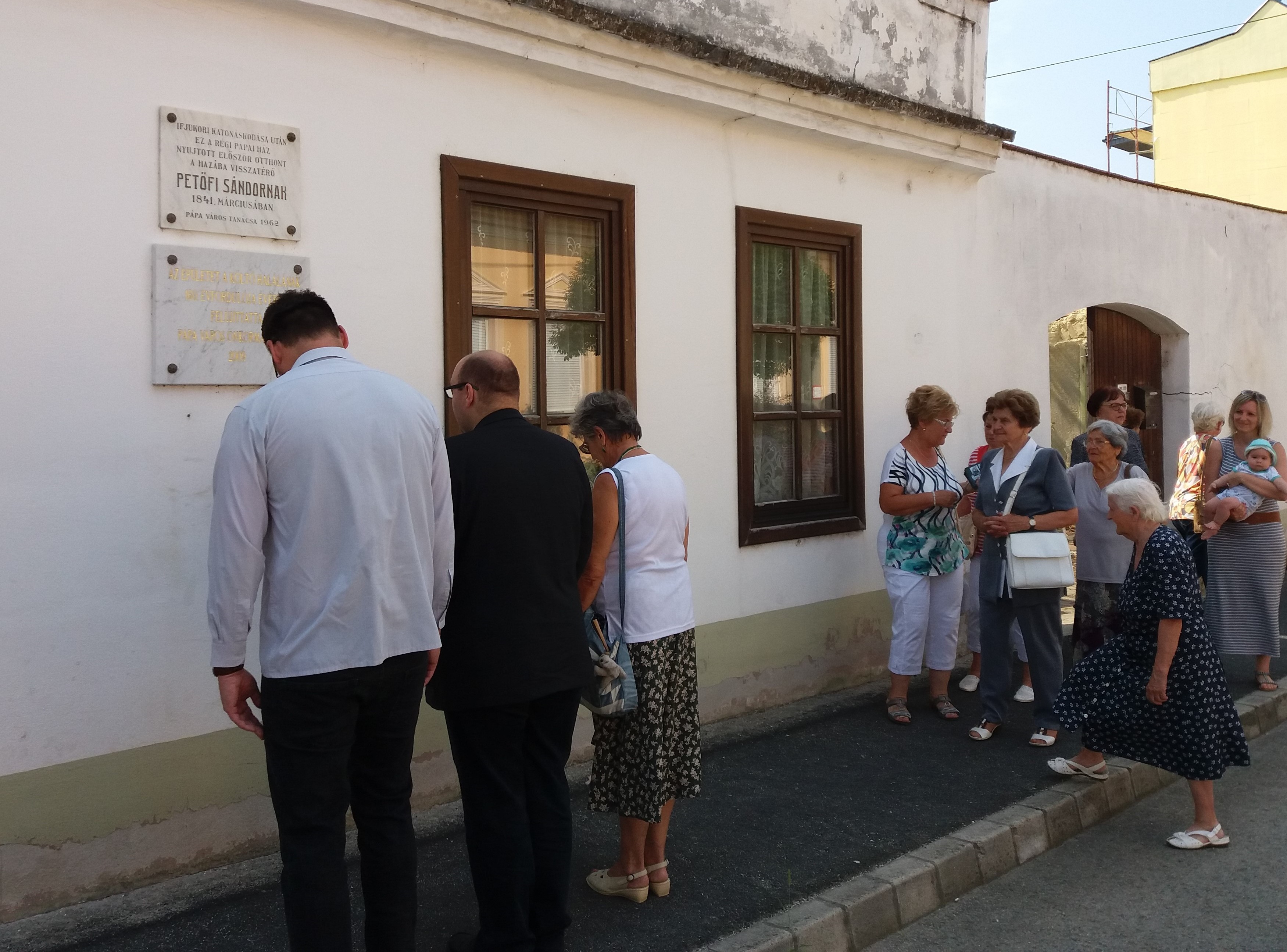 Az egykori pápai diák (akiből ugyebár Pápán lett Petőfi, itt vette fel ezt a nevet!) eltűnésének-elhunytának kerek 170. évfordulónapjának délelőttjén, 2019. július 31-én, szerdán a pápai Petőfi-hagyományokat őrző és ápoló Elsősorban pápai Városbarát Egylet (EpVE) koszorúelhelyezéssel egybekötött irodalmi félórát tartott annál a pápai Gyurátz Ferenc utcai épületnél, ahol először lakott Pápán Petőfi Sándor unokatestvérével, Orlai Petrich Somával 1841 tavaszán.