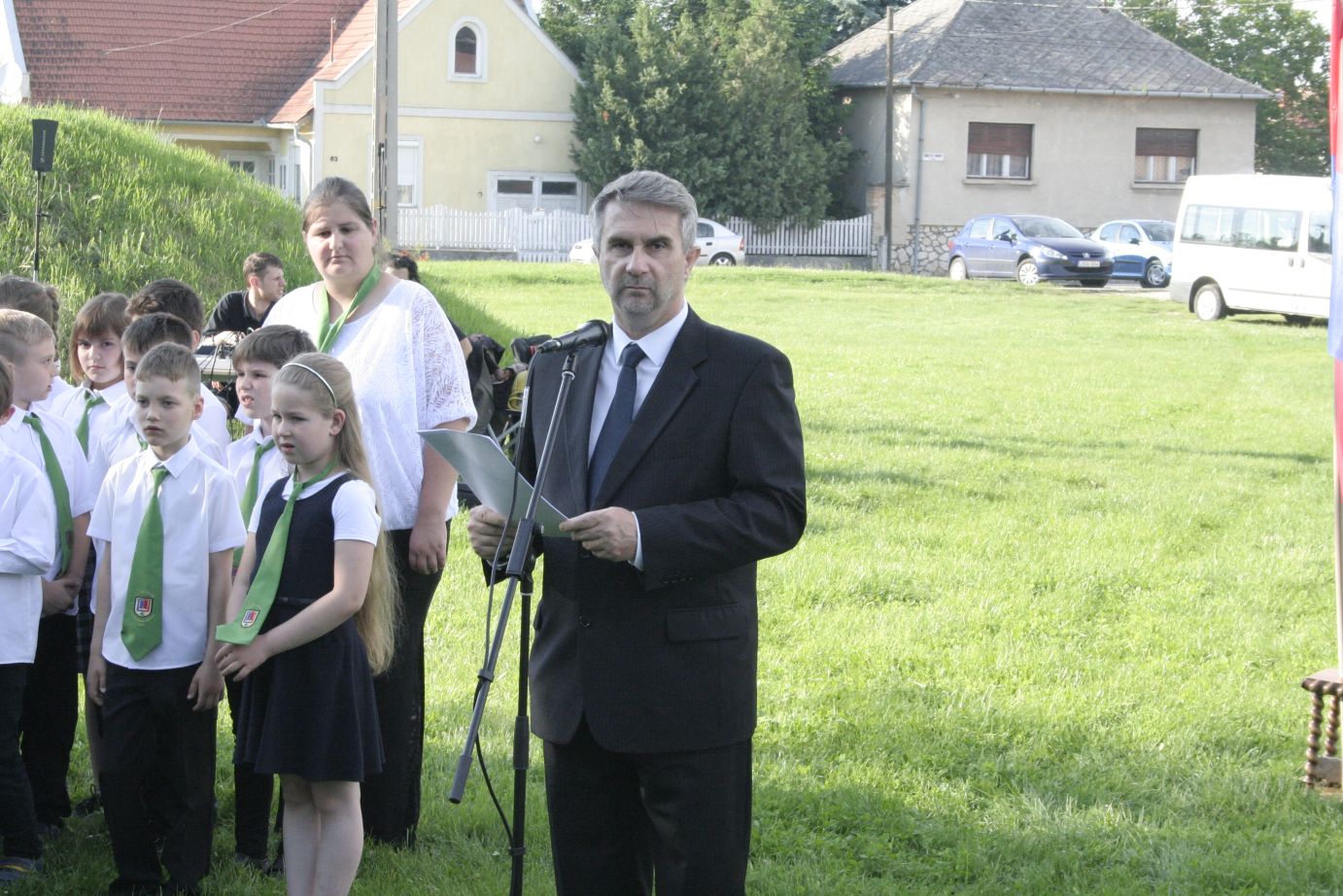 A Tarczy Lajos Általános Iskola első és második E osztályosainak műsorát követően a megemlékezés az Országzászló emlékműnél folytatódott koszorúzással és a Szózat közös eléneklésével.