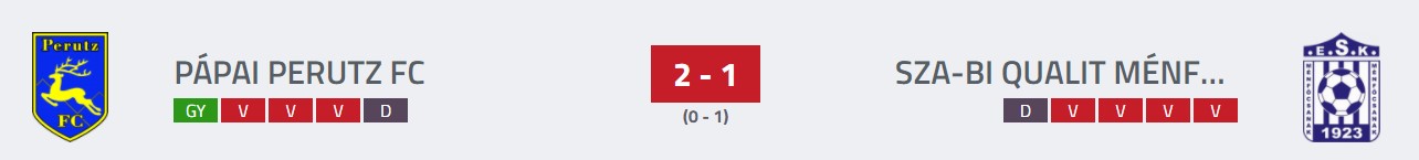 Elhalasztott mérkőzést pótolt be a Pápa és Ménfőcsanak együttese. A kiesés elől menekülő vendégek a félidőben még vezettek, de a Perutznak sikerült megfordítani a mérkőzést.