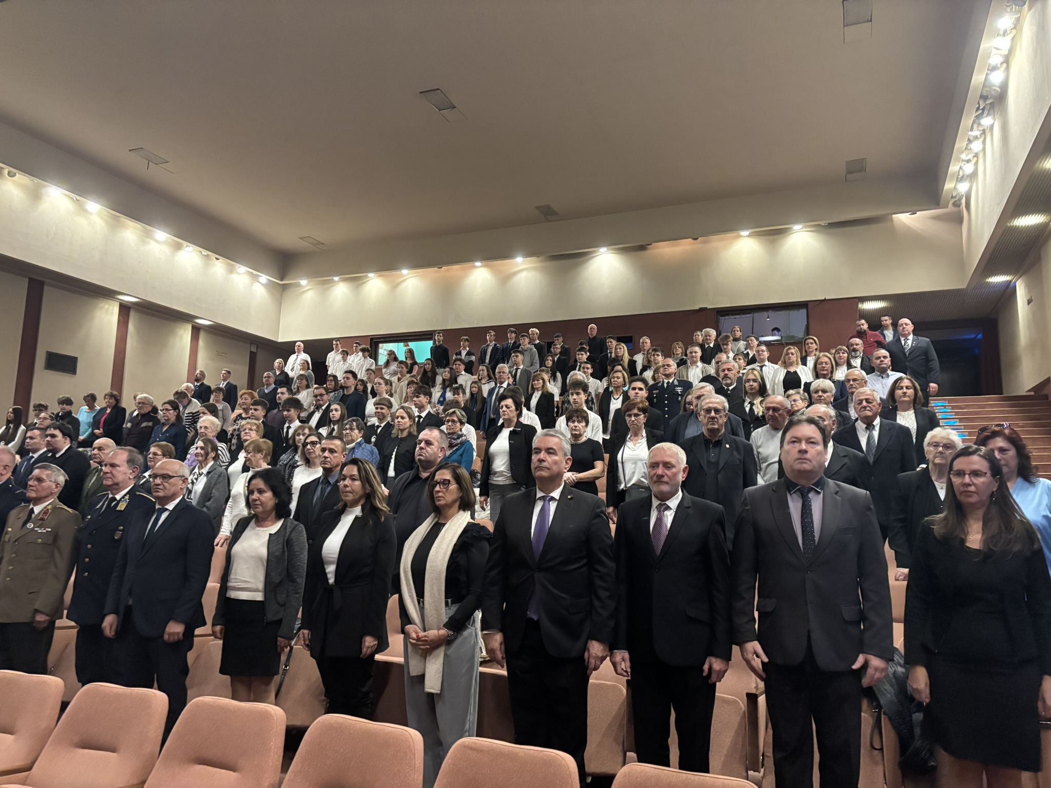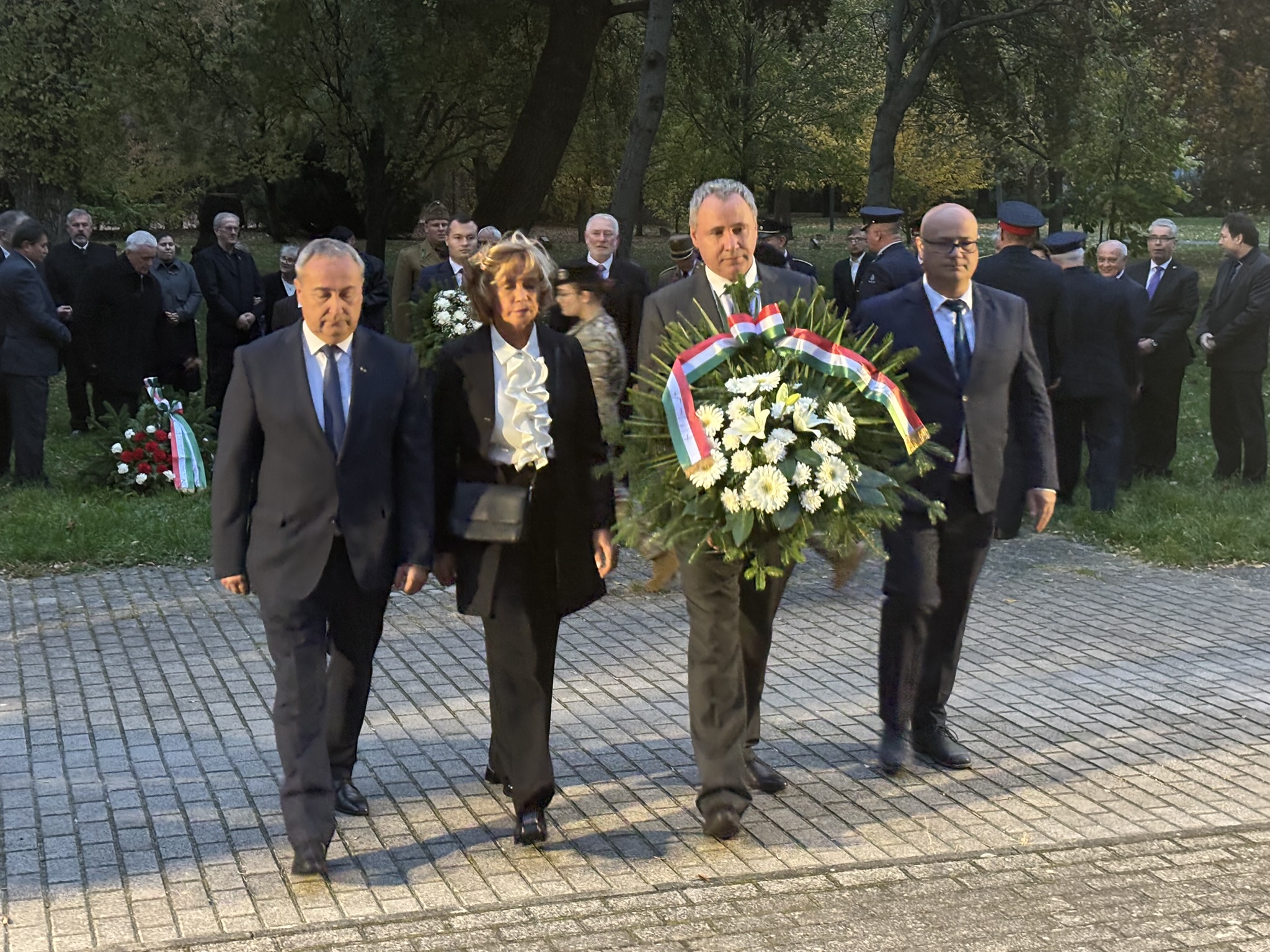 A JMK színházépületében Grőber Attila polgármester mondott beszédet. Kiemelte, az akkori felkelésekkel szemben az október 23-i forradalom nem kenyérlázadás volt, több tényező együttes hatása nemzeti sajátossággal ruházta fel a rendszer- és kommunista ellenességet. - A szovjet rendszerre és a Szovjetunióra nem egyszerűen elnyomóként, a kommunista ideológia hordozójaként, hanem a nemzeti létünket megkérdőjelező hatalomként tekintett az ország. Minden dokumentum, emlékirat és forrás arról tanúskodik, hogy a forradalom alapélménye a nemzeti egység. Az érzés, hogy együtt van a nemzet, együtt van az ország, mindennél erősebb volt - fogalmazott a városvezető.