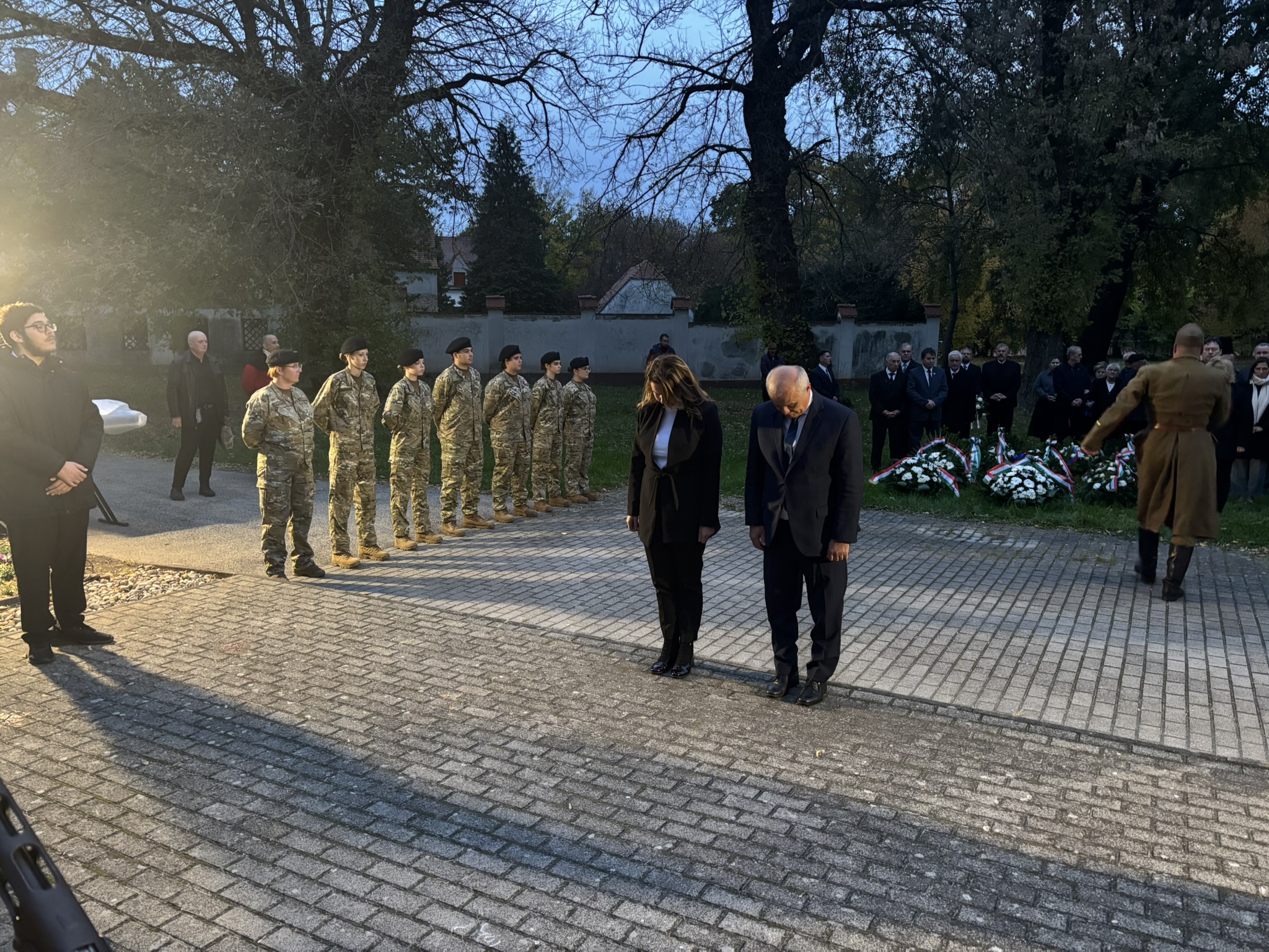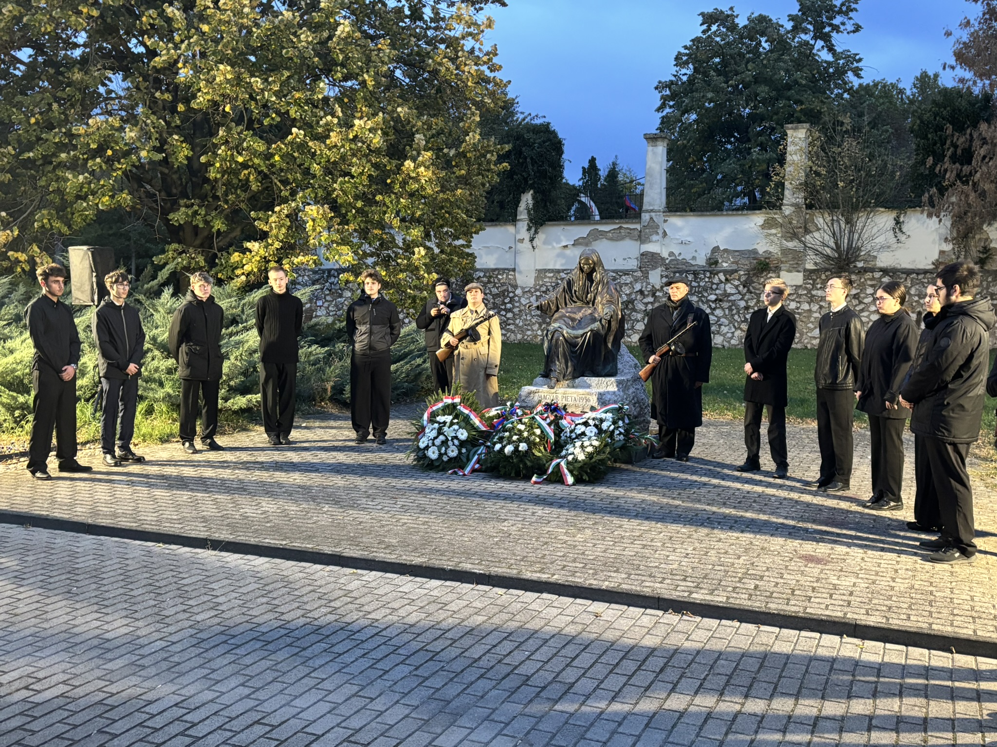 A megemlékezés koszorúzással és a Szózat közös eléneklésével zárult a Magyar Pieta 1956 szobornál.