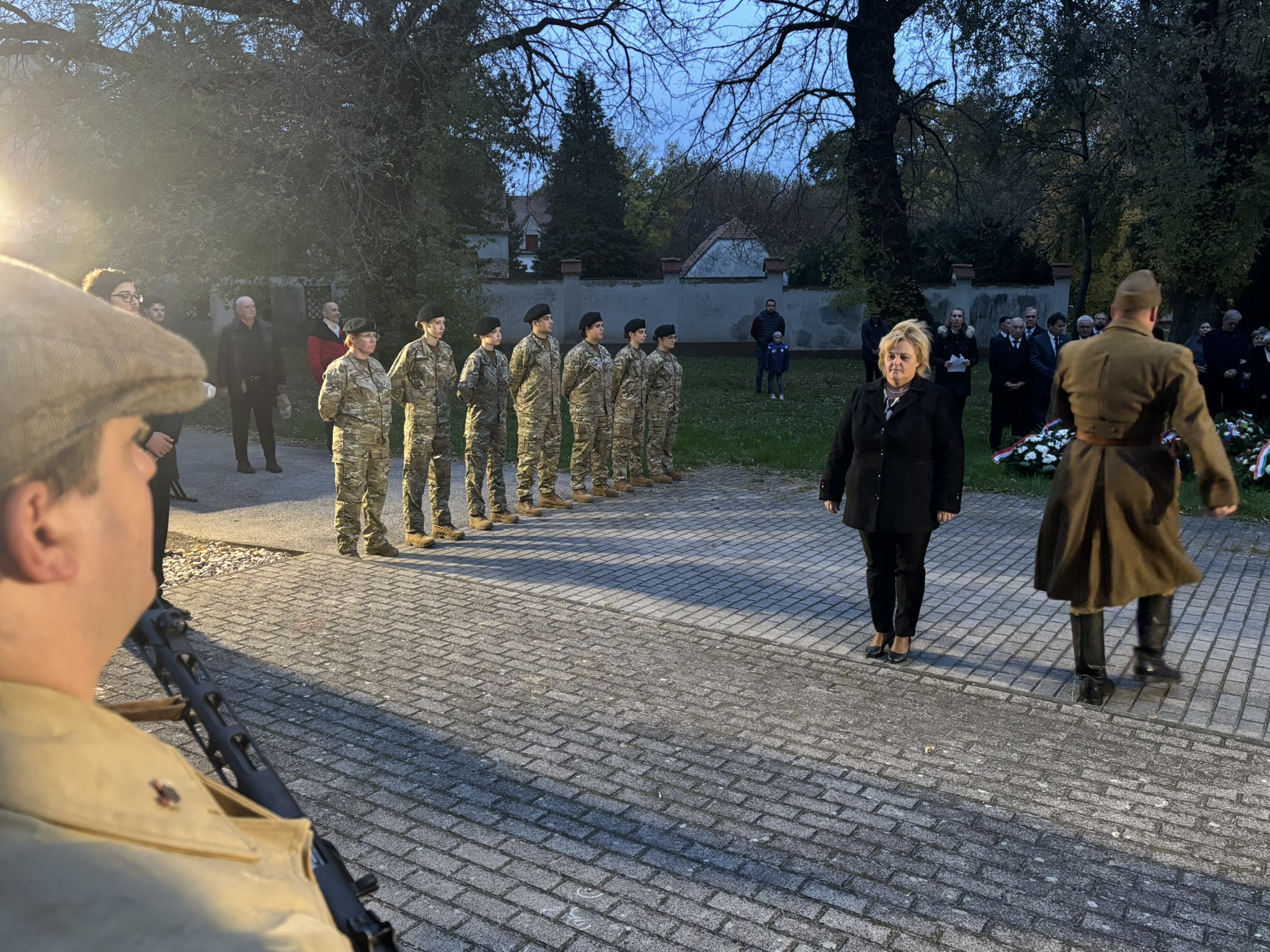 Az emlékünnepség Kiss Zoltán honvéd alezredes emléktáblájánál kezdődött. A mártírhalált halt honvédnek 30 évvel ezelőtt avatták fel az emléhelyét, Kiss Bódog Zoltán, Kiss Zoltán leszármazottja emlékezett rá a Deák Ferenc utcában. Ezt követően az emlékezők dr. Katona István emléktáblájánál is elhelyezték az emlékezés koszorúit, virágait.