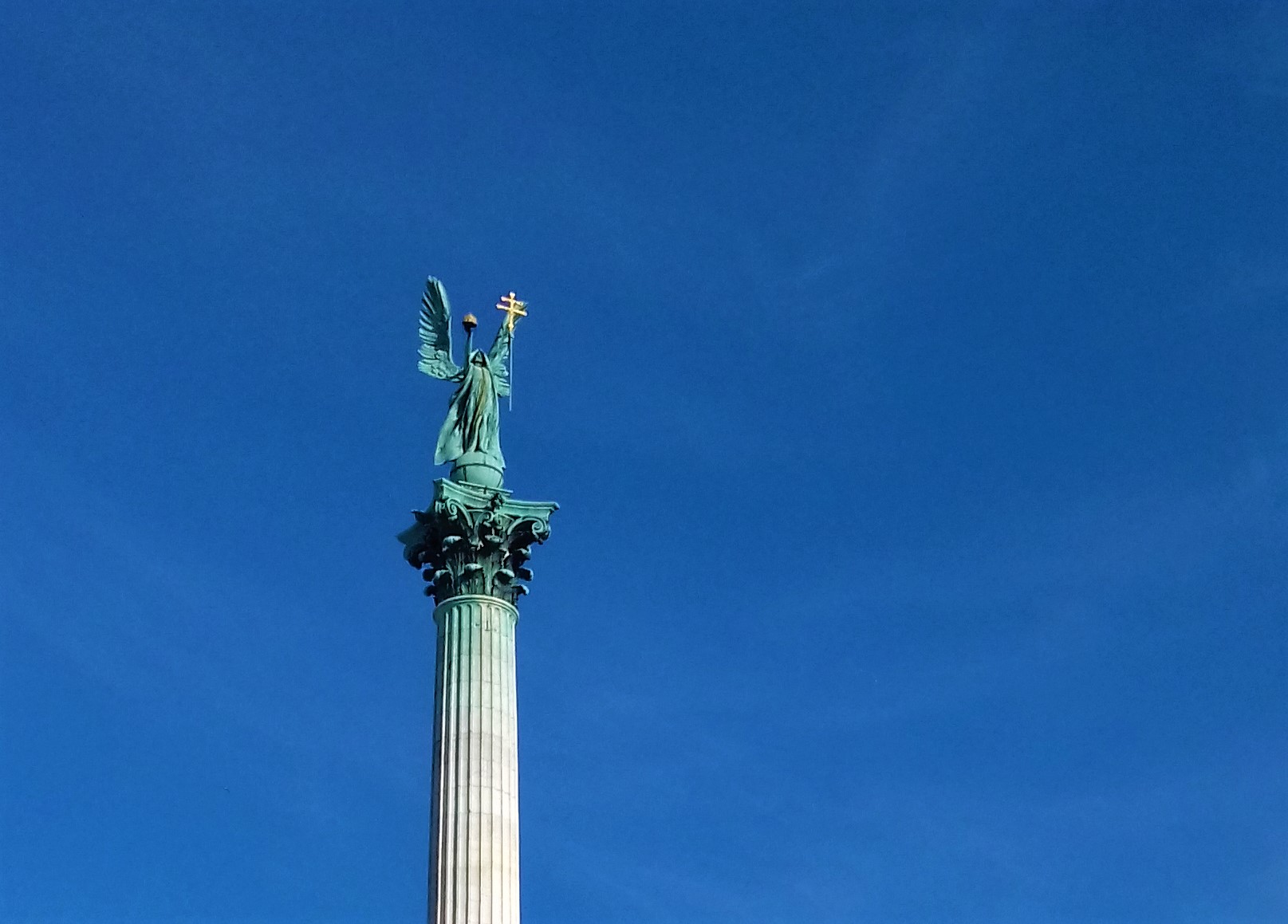 Elég „gyanúsan” hasonló a pápai Nagytemplom Hubert Maurer alkotta főoltárképének kitárt szárnyú, jobb kezében koronát hozó, koronát tartó főangyalának alakja a Zala György által megformált, a budapesti Hősök terei Ezredéves-emlékmű központi, harminchat méteres korinthoszi oszlopának tetejére helyezett, kitárt szárnyú, ugyancsak jobb kezében koronát, a Szent Koronát tartó arkangyalának alakjával. Lehetséges, elképzelhető, hogy Zala Pápáról meríthetett anno ihletet; emlékezhetett fiatalkorából a pápai Nagytemplom főoltárképének angyalábrázolására, megragadhatta ez a szimbólum (?). Számomra mindenesetre mindez érdekes, elgondolkodtató. Szakemberek állítják, hogy a Hősök terei angyal szoboralak egyedinek mondható Magyarországon; amikor elkészült, osztatlan sikert aratott, bár – úgy tudni – eredetileg annak helyére Hungáriának, a „magyarok istennőjének” a szobrát tervezték. Nem az lett. Nagy, kitárt szárnyú, jobb kezében koronát hozó, koronát tartó Gábriel arkangyal-szobor lett. Ebben – az 1900-as párizsi világkiállításon nagydíjat nyert – Zala-féle angyal-jelképben a nemzeti-állami függetlenség és az európai integrálódás eszméje nyert megfogalmazást.