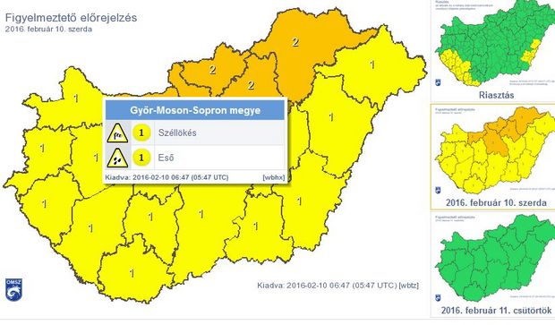 Eddig átlagosan 10-22 mm csapadék esett le a Dunántúl északi felén. Az intenzív esőzés az Alpokalján és a Bakonyban átment intenzív havazásba. A nap további részében marad a szeles, csapadékos idő többfelé esővel, havasesővel, néhol havazással.