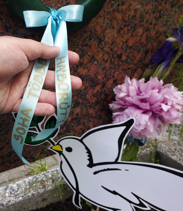 A temetőben megjelentek „Soha többé háborút!” feliratú, a béke színével, vagyis kék színű szalagokkal átkötött kis koszorúkat, illetve kartonból kivágott békegalamb-szimbólumokat helyeztek a magyar, a szovjet katonai parcellákhoz, és természetesen a „halott katona már nem ellenség” jegyében a német sírkert emlékjeléhez is.