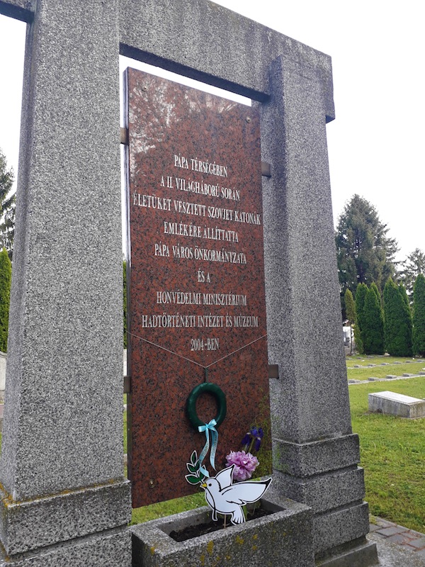 Mint Kerecsényi Zoltán elmondta, az utóbbi időkben az Elsősorban pápai Városbarát Egylet égisze alatt jönnek el ide fejet hajtani, korábban, amikor a néhai pápai Helyőrségi Művelődési Otthon falai között munkált, akkor számos veterán, idősebb katonaember részvételével szervezte ezt a május 8-i emlékalkalmat; a legtöbben talán tizenegy esztendeje, 2008-ban voltak, azóta sajnos már mind kevesebben.
