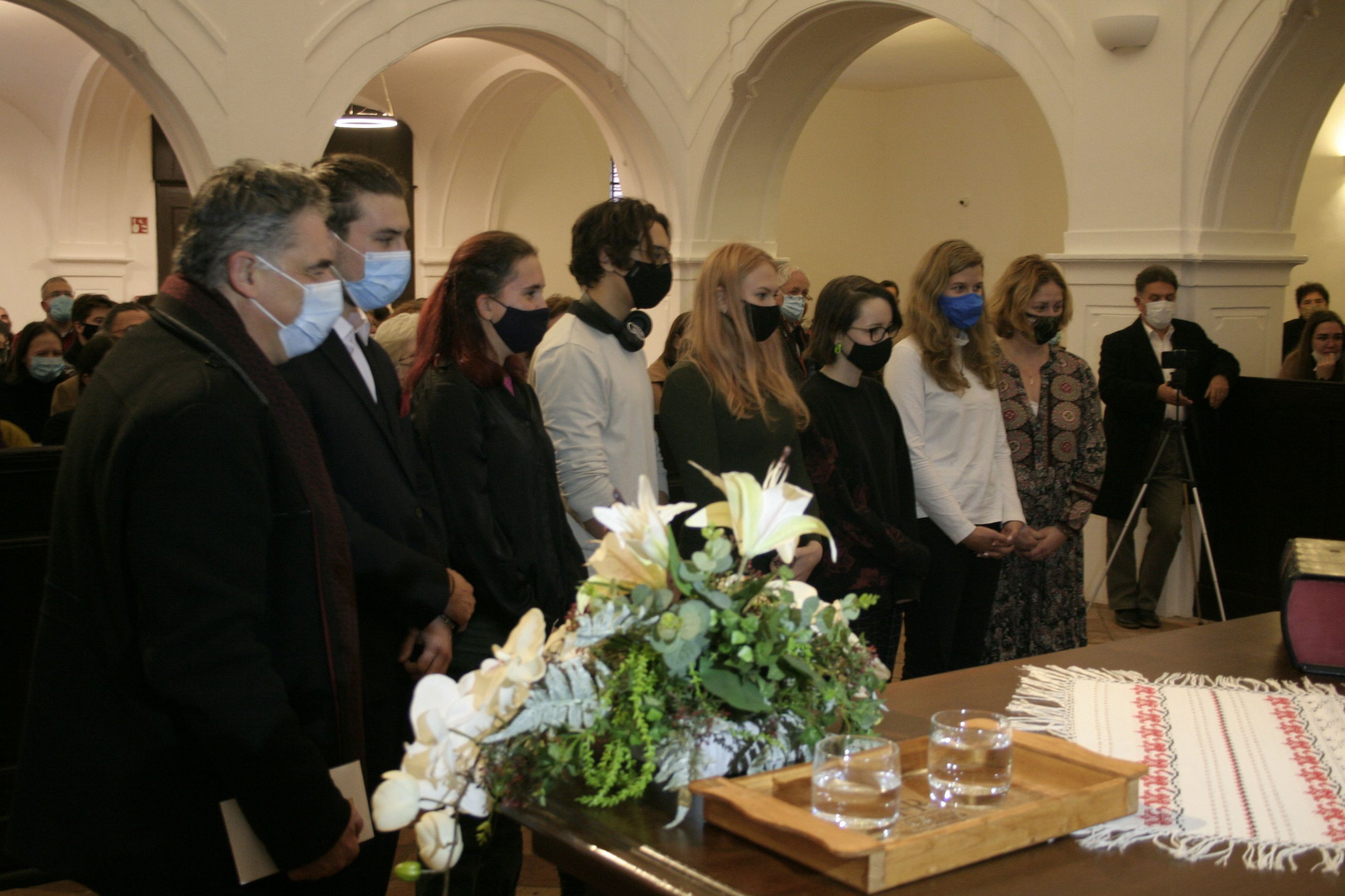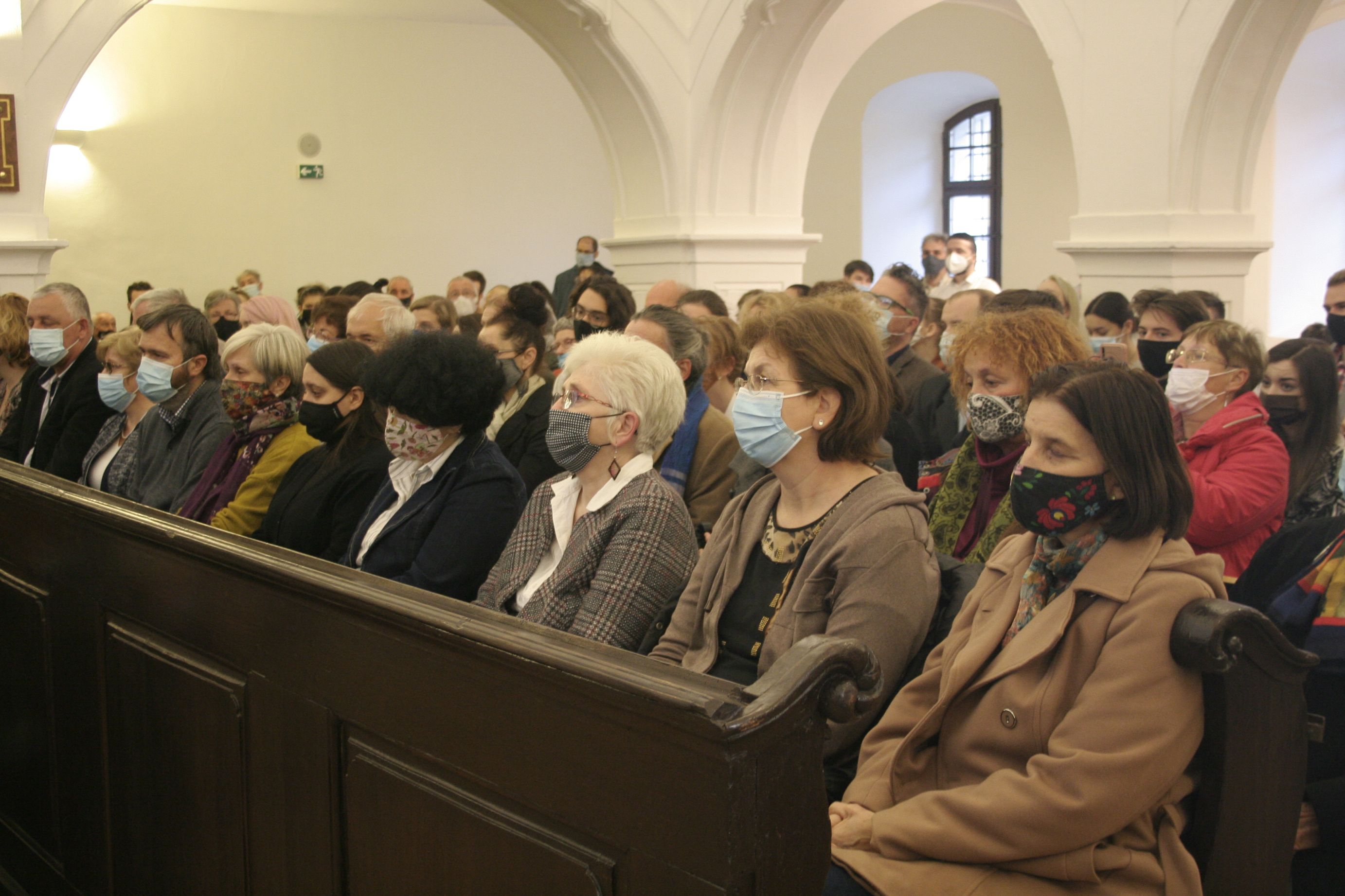 A súlyos betegséggel küzdő művésztanár tiszteletére zsúfolásig megtelt a református ótemplom, korábbi és jelenlegi tanítványokkal, tanárkollégákkal, barátokkal, tisztelőkkel és a művészet iránt érdeklődőkkel.