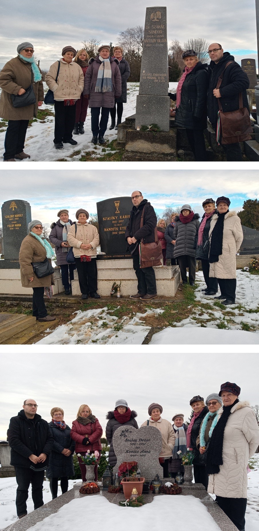 Halott pápai, Pápa környéki meghatározó személyiségekről, példaképekről is megemlékezett a PVE egyleti küldöttsége. A Marcal-völgyi Egeralja temetőjében felkeresték dr. Szakál Sándor (1909–1980) pápai gimnáziumi tanár, tudós helytörténész, író, Szalóky Károly (1911–1997) földműves, parasztköltő, festőművész, honismereti szakkörvezető, műgyűjtő, Szalay Dezső (1939–2022) pedagógus, népművelő, nemesszalóki iskolaigazgató nyugvóhelyét. A küldöttség tagjai – egykori tanítványok, kollégák, tisztelők – 2023 karácsonya felé közeledve szeretettel gondoltak mindegyikükre egy-egy mécses és egy-egy fenyőcsokor elhelyezésével. Emléküket továbbra is fenn fogják tartani.