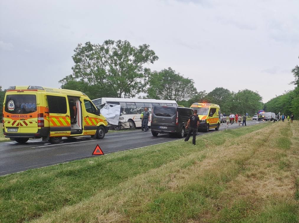Autóbusz, furgon és személyautó karambolozott Tapolcafőnél