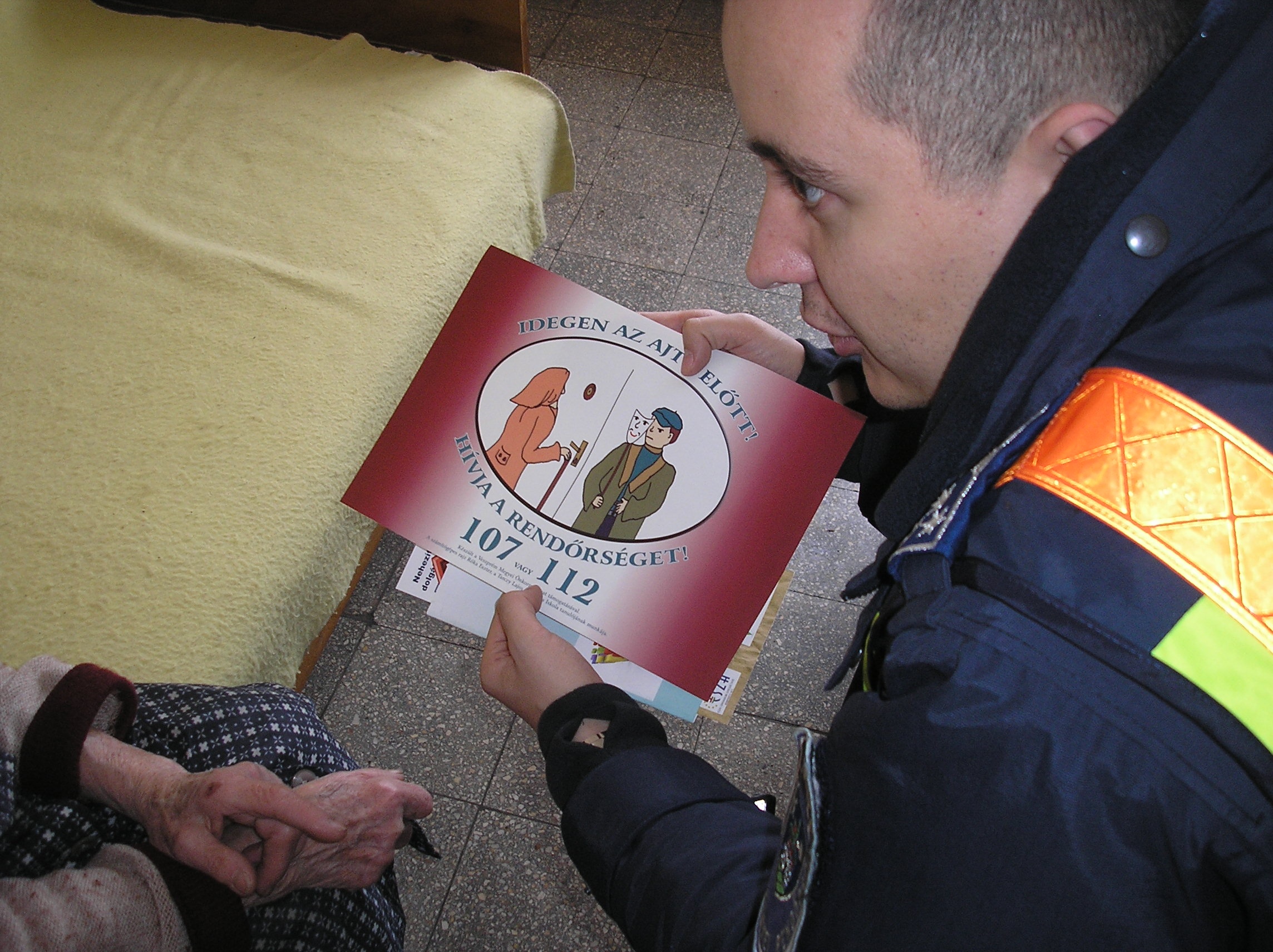 A rendőr tájékoztatta a szépkorúakat a szolgálati telefonszámáról, az ingyenesen hívható 107-es és 112-es segélyhívó számokról, valamint a betörések, és az alkalmi lopások megelőzését szolgáló bűnmegelőzési kiadványokat adott át számukra.