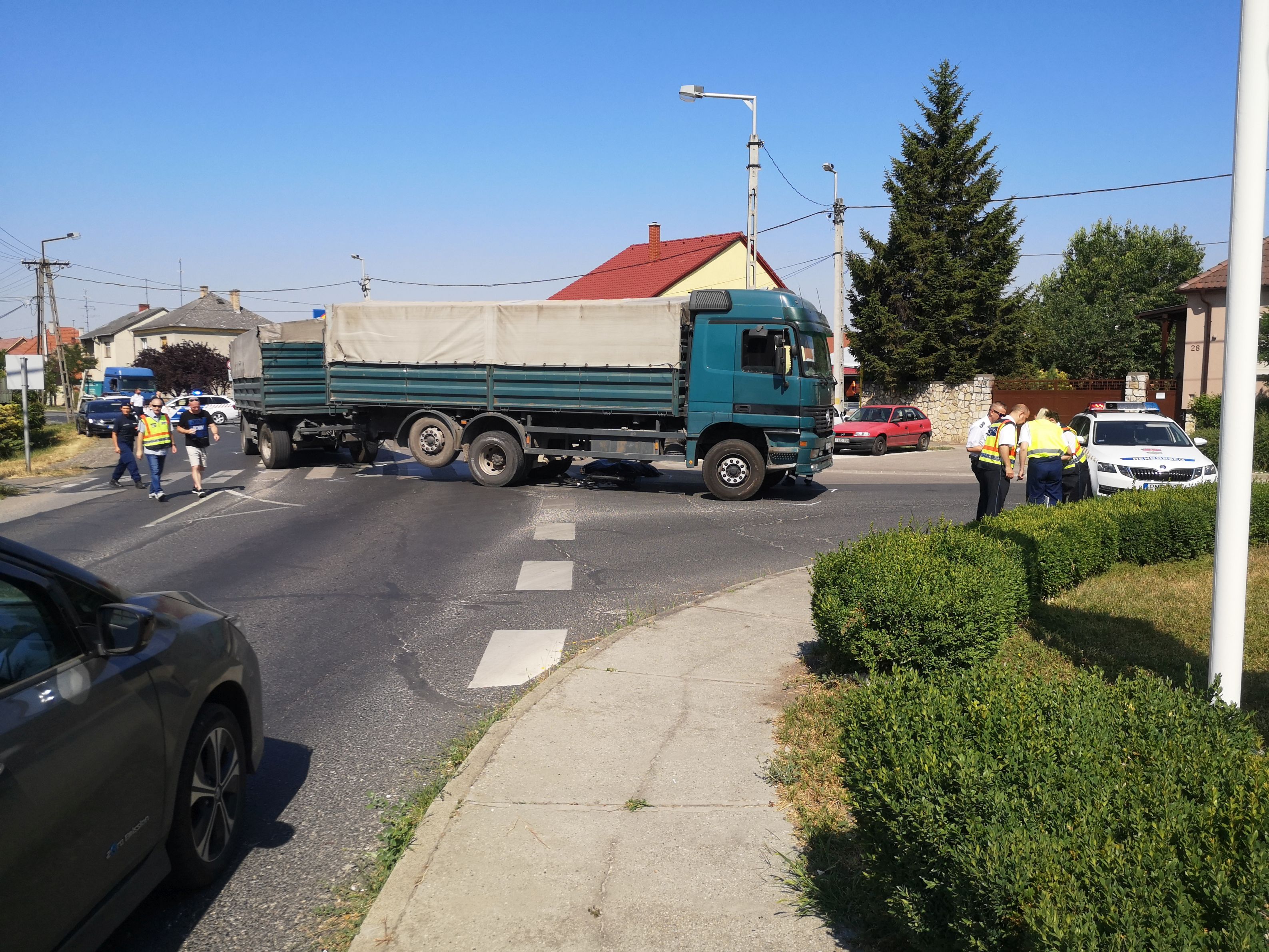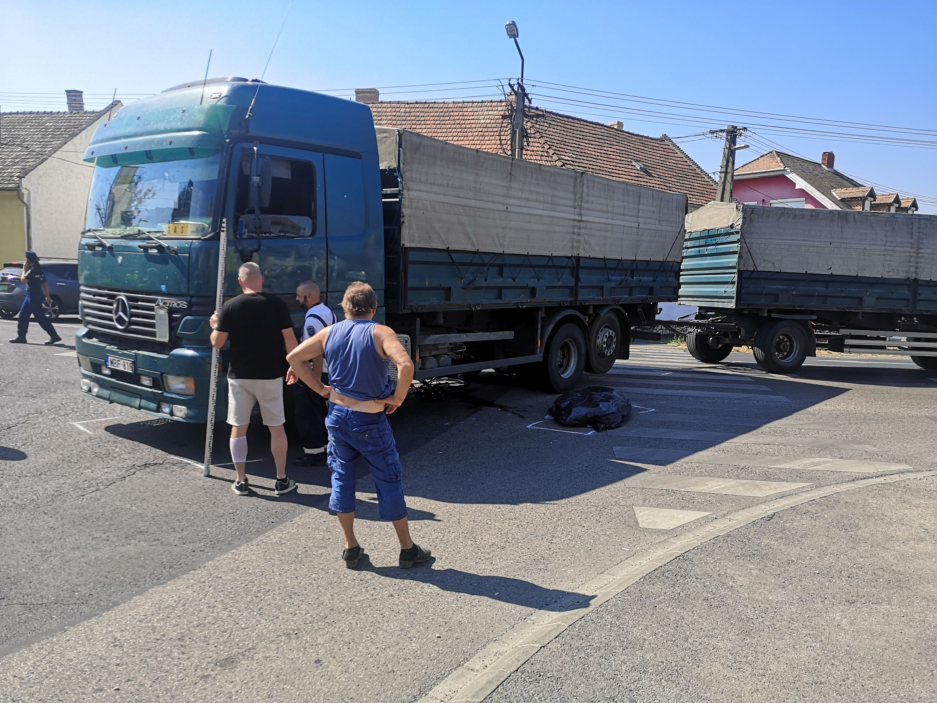 A kerékpárt toló idős nénit egy teherautó gyűrte maga alá, azonnal meghalt.