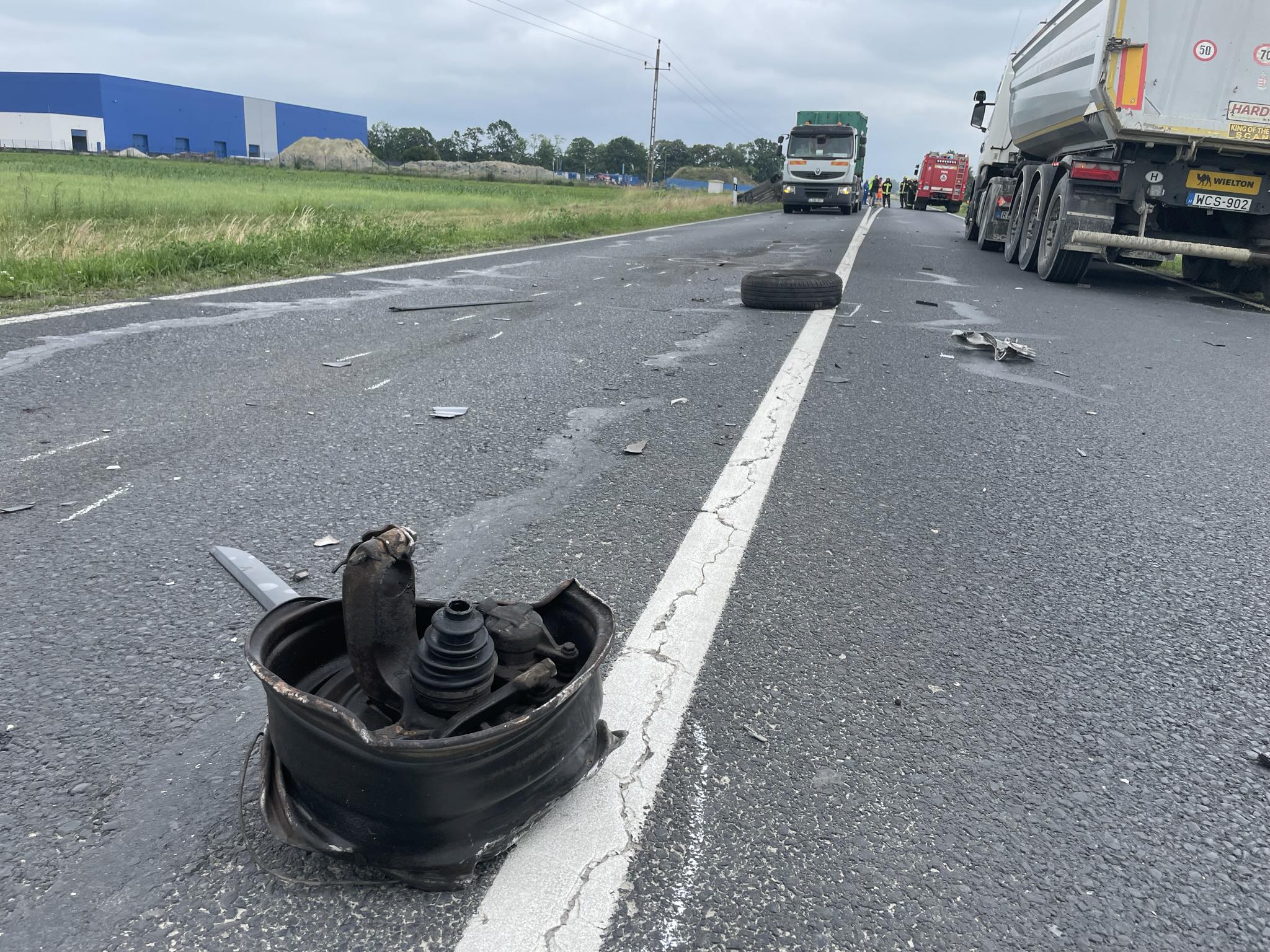 Úgy tudjuk, hogy a személyautó kezdett a kamion előzésébe, ám szemből is érkezett egy teherautó. A sofőr a forntális ütközést el tudta kerülni, de így is az egyik kamion oldalának csapódott.
