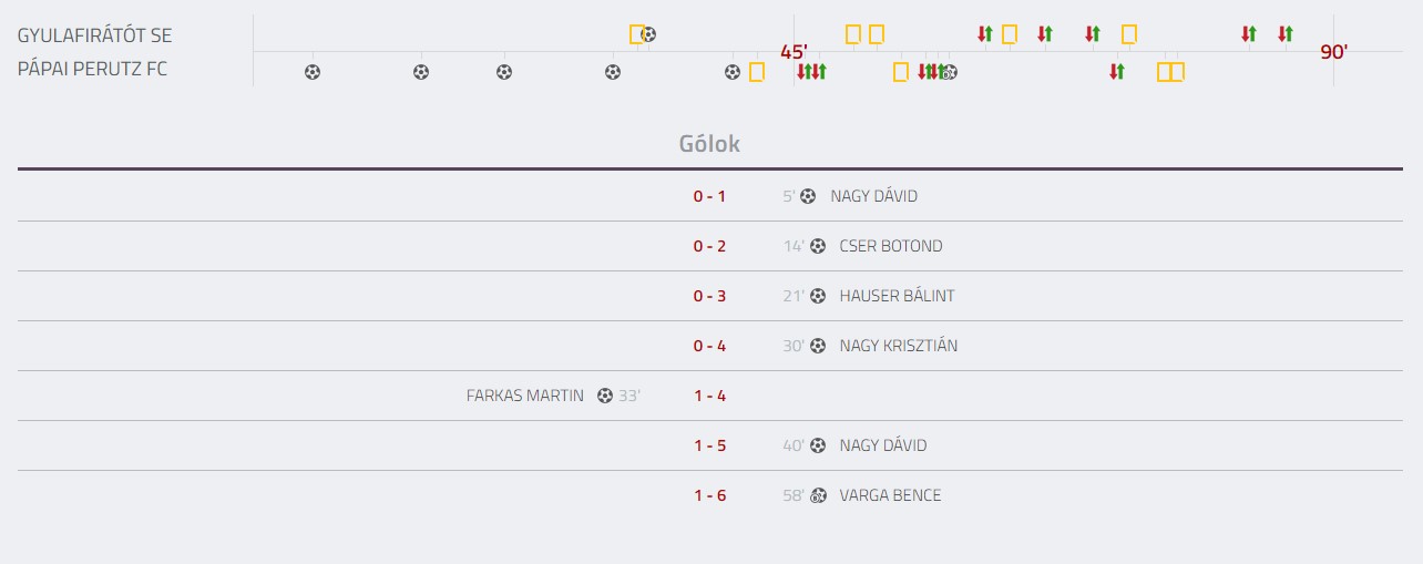 Már az első félidőben eldöntötték a vendégek a három pont sorsát, hiszen ekkor már 5-1-et mutatott az eredményjelző, a második félidőben egy további góllal tették fel az i-re a poltot a pápaiak.