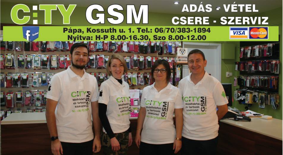 Mindig a legújabb, a legmodernebb, a legokosabb készülékekre vágyunk. Életünkben vannak olyan tárgyak, melyek kiemelten kötődnek hozzánk, hétköznapjainkban társunkká váltak. Napjainkban ilyen tárgy lehet a mobiltelefonunk, mely nélkül szinte elképzelhetetlenek napjaink, gondoljunk csak bele, ha véletlenül nélküle indulunk munkába, máris pánikba esünk, hiányérzetünk támad. Mint minden társ, telefonjaink is törődésre szorulnak, például néha ki kell cserélni egy- egy alkatrészt, akkumulátort, hátlapot, vagy védőfóliával ellátni ahhoz, hogy hosszú távon társunk maradhasson. Pápa belvárosában a Kossuth utcán a City GSM minden ügyfelének, mobiltelefon tulajdonosnak megoldást kínál, s megpróbál kedvezni:
