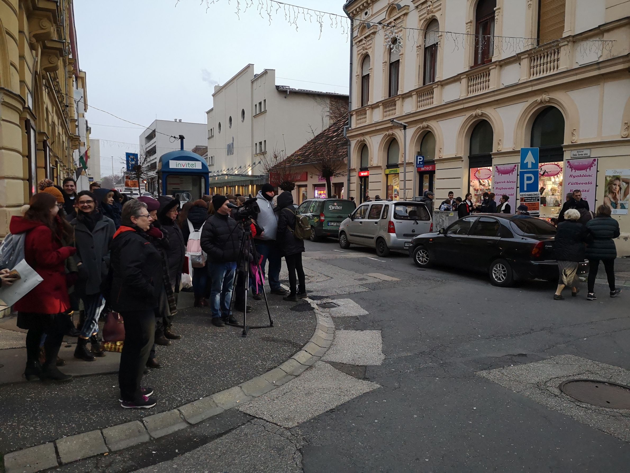 Az ünnepség a Deák Ferenc utcában folytatódott, ahol a programot szervező Polgár Gabriella belpolitikai újságíró gondolatait Fejesné Emike tolmácsolta a jelenlévőknek. Mint elhangzott, a program összeállítója az idei esztendőben rendkívül fontosnak ítélte, hogy a Vilma-nap a magasból induljon, emlékezve azokra, akik már nem lehetnek közöttünk.