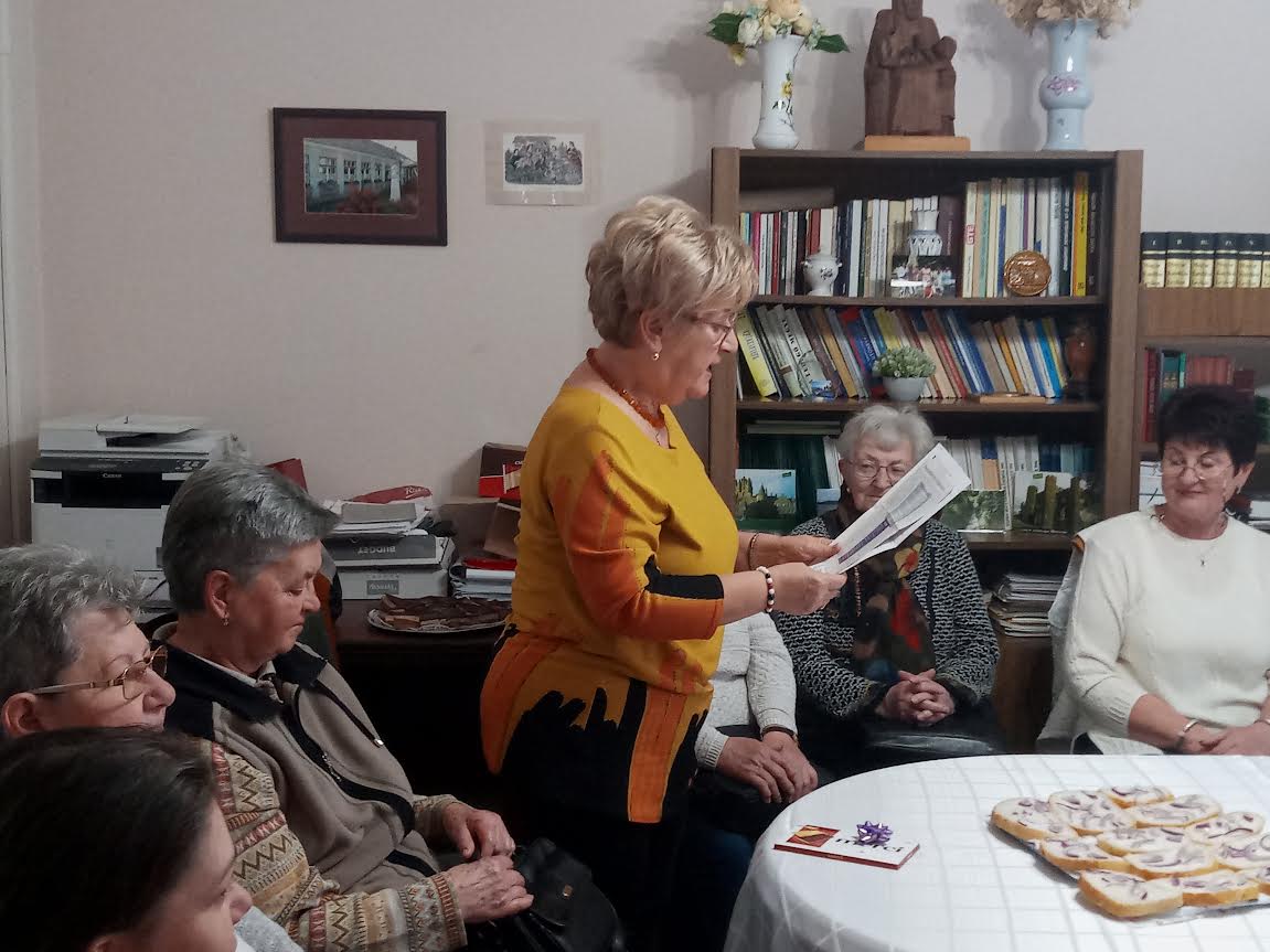 A köszöntő irodalmi összeállításban többek között Aranyosi Ervin, Petőfi Sándor, Puskásné Tófeji Mária Valéria, Varga Györgyné Bárány Ágota versei hangoztak el. Felolvasásokkal Antal Ferencné, Ernszt Józsefné, Margl Józsefné, Puskás Kálmánné, Vennes Györgyné működtek közre. A program szeretetvendégséggel, fehér asztal mellett zárult.