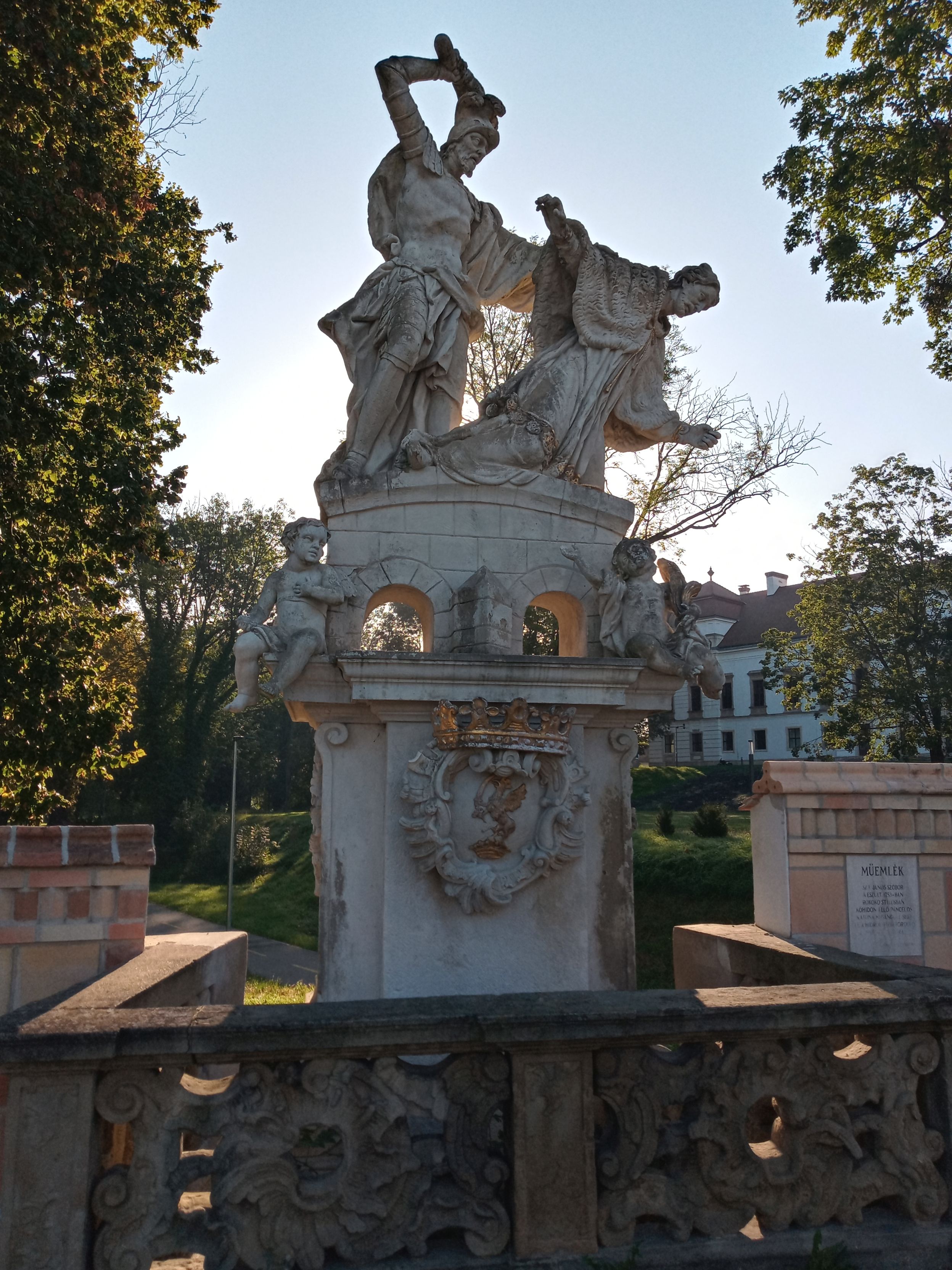 Ez a jellegzetes helyi műemlék gyermekkoromtól fogva fontos nekem, a puttók közül egy pedig különösen; nem véletlenül tettem rá a fényképét 2015-ös Magyarnak lenni, pápainak lenni címet viselő irományom borítójára is.