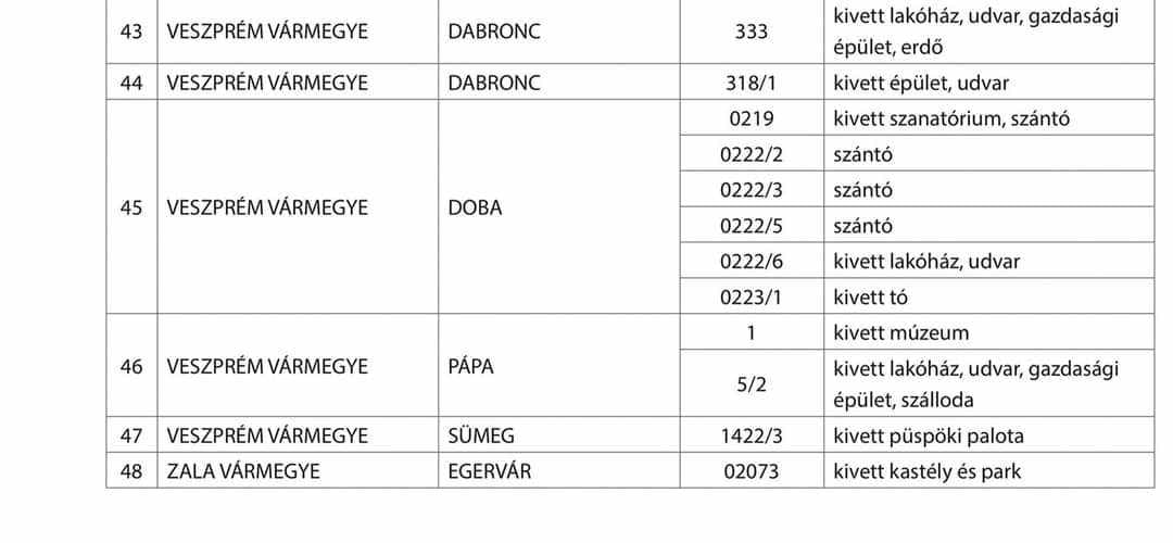 A 48 kasély között szerepel a pápai Esterházy-kastély is, bár a listán nincs nevesítve, hogy melyik pápai épületről van szó, ám nem nehéz azt kitalálni.