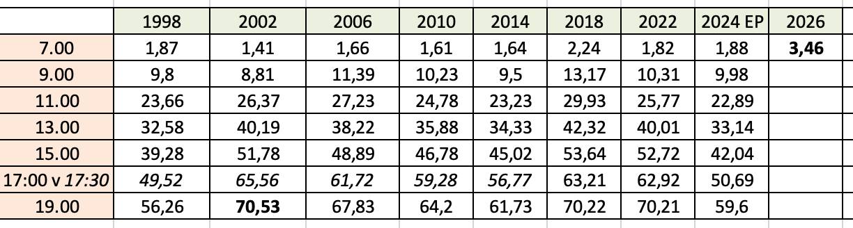 Ilyen magas részvételi arány még nem volt a rendszerváltás óta. (Táblázat: Török Gábor).