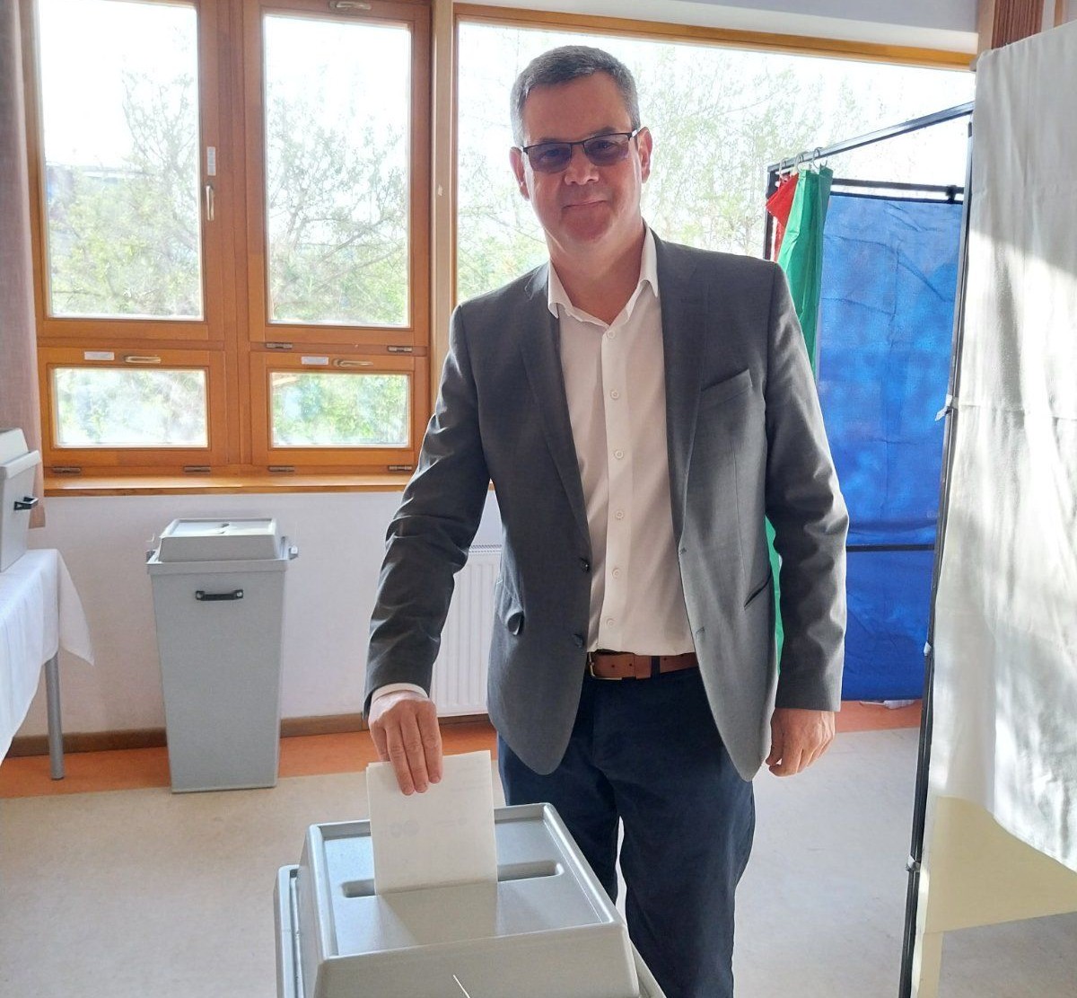 A Tisza Párt képviselőjelöltje Farkasgyepűn adta le a voksát, a lakóhelye szerinti szavazókörben.
