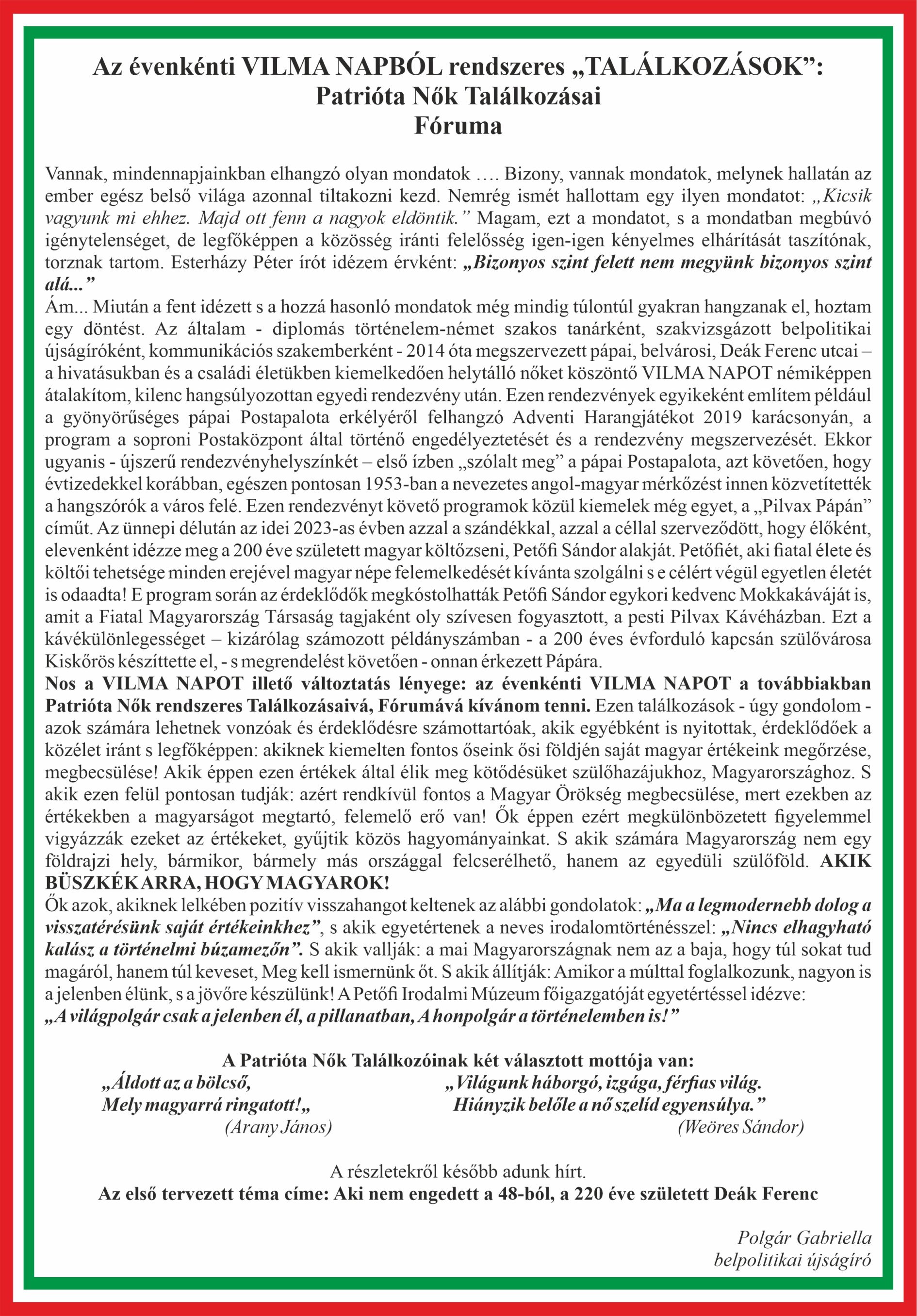 Évenkénti Vilma napból rendszeres találkozások