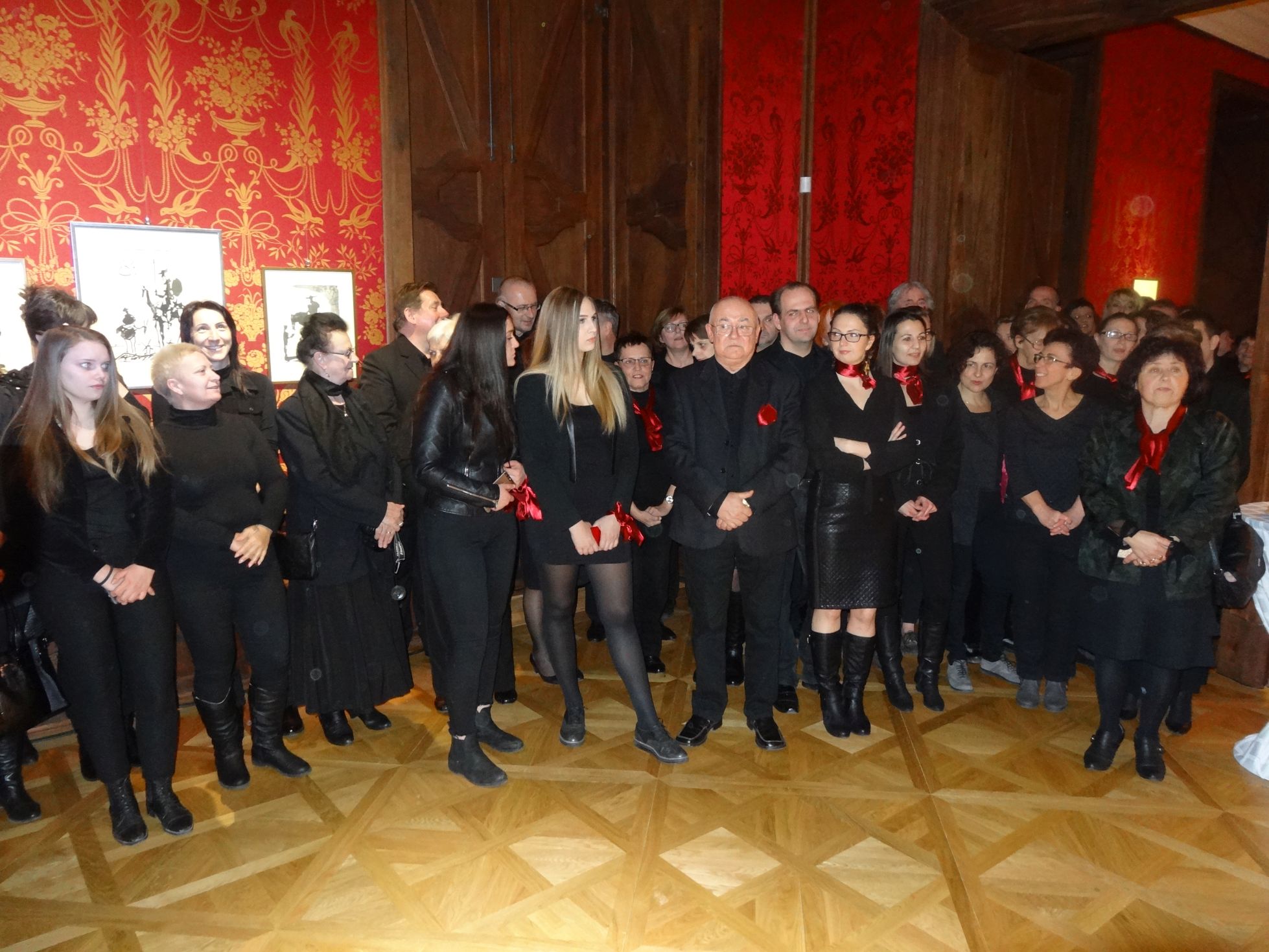 A szervezők kérésének mindenki eleget tett, így a tereket feketébe, Picasso kedvenc színébe öltözött, kíváncsian körültekintő vendégsereg lepte el. A sötét öltözetet a szervezők ajándékával, egy bordó kendővel tudták feldobni a jelenlévők, akiket Boros Katalin köszöntött. A kastélyt üzemeltető cég ügyvezetője felkonferálta a megnyitó első meglepetését, egy flamenco táncost, Bajnay Beátát és gitáros kísérőjét, Oravecz Pétert.