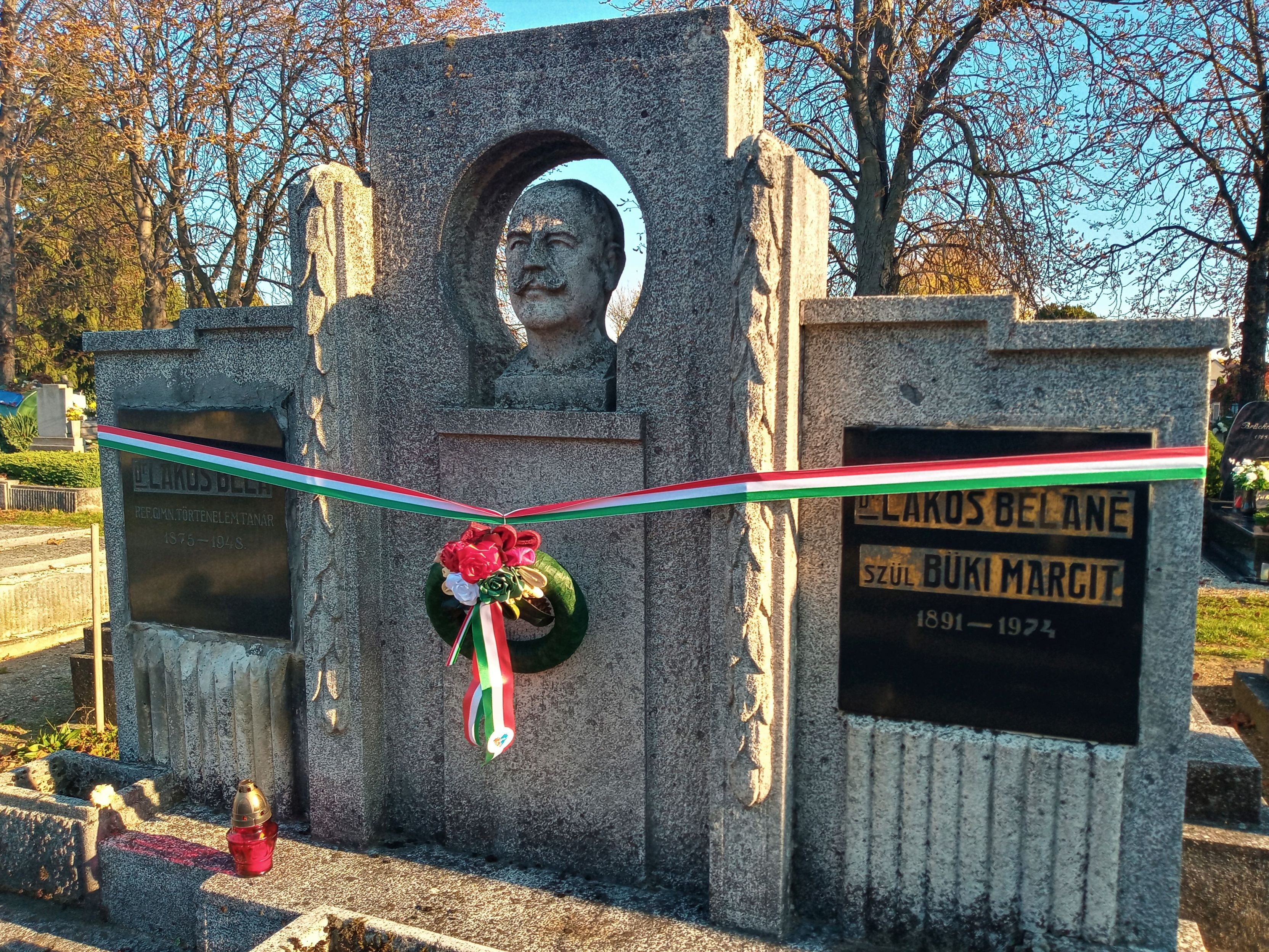 Tavaly jelent meg Kerecsényi Zoltán „Ki volt dr. Lakos Béla?” című kötete. Az utóbbi évtizedekben dr. Lakos Béla emlékéről nem igazán lehetett sokat hallani Pápán, szinte semmit sem. Portrészobros síremlékjele megragadhatja a temetőlátogatók figyelmét, előtte sokan elsétálhattak már, de a tábla feliratából csak igen rövid információt szerezhetnek a neves halottról. Életútjának, pályájának több részletre kiterjedő feltárása, megnyugtató tisztázása máig hiánya a pápai hely- és iskolatörténetnek. Ha a hiány feloldásához a „Ki volt dr. Lakos Béla?” című 2020-as összeállítás valamicskét hozzásegít, már megérte elkészíteni – mondta el Kerecsényi Zoltán, aki többek között kiemelte, Lakos közéleti, pártpolitikai pályafutása alatt több hibát elkövethetett, sok esetben tévedhetett, rosszul dönthetett, viszont fő tevékenységét, pedagógiai munkásságát tanítványai pozitívan méltatták, tudományos teljesítménye pedig ma is elismerésre méltó.
