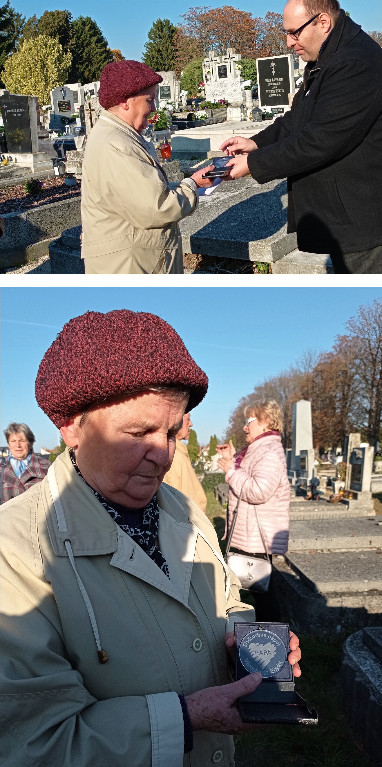 Kerecsényi Zoltán lokálpatrióta, egyleti ügyvivő elmondta, köszönet illeti Pápa város polgármesterét, dr. Áldozó Tamást, mert a közelmúltban az ő hathatós segítsége révén menekült meg ez a síremlékmű a pápai Alsóvárosi köztemetőben, egy máig elfeledett római katolikus lelkipásztor, Farkas Károly és hozzátartozói síremlékhelye.
