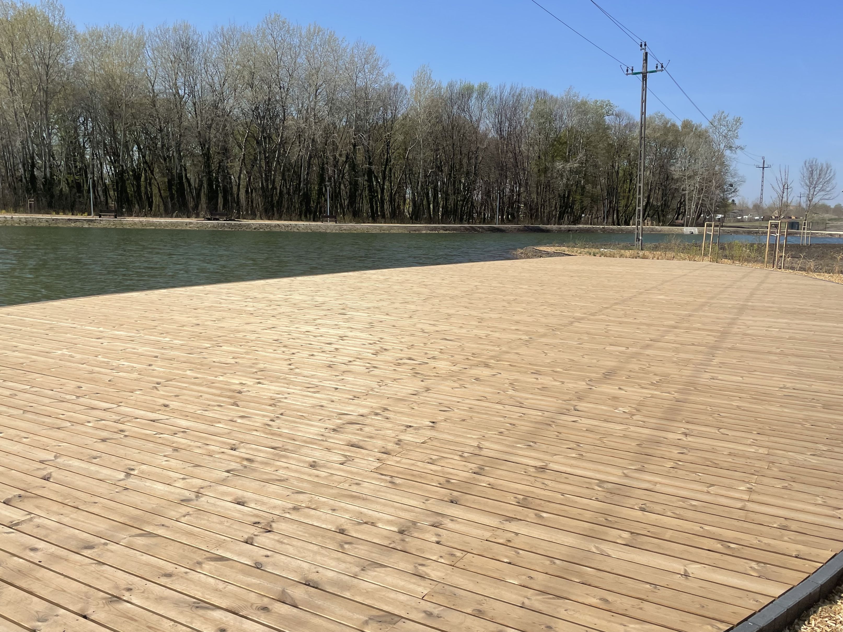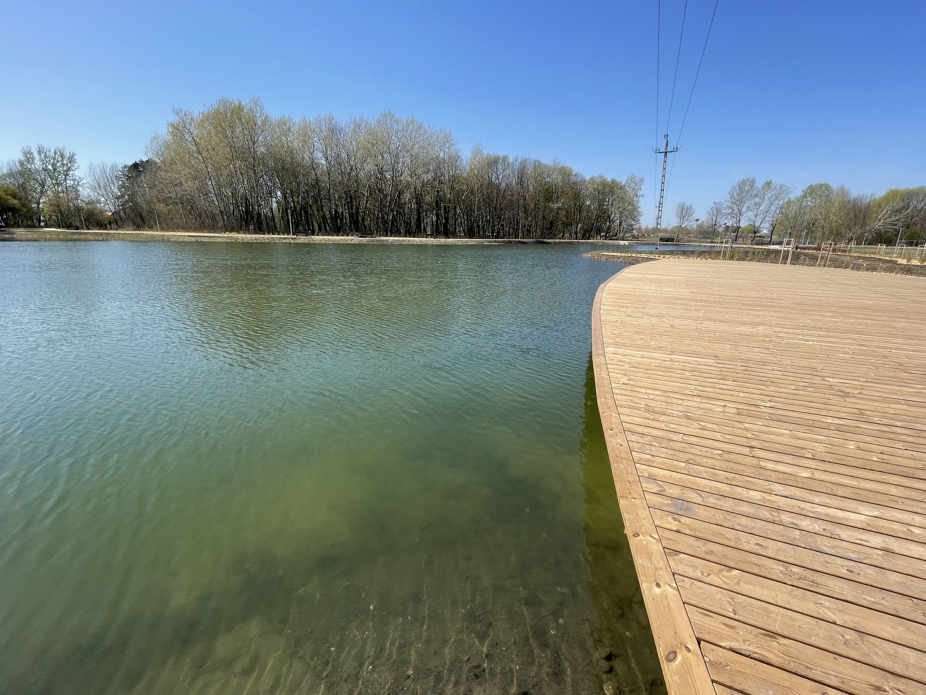A Külső-Várkert egyik leglátványosabb eleme, az ott jóval korábban kialakított tómeder feltöltése volt, a termálfürdő elfolyó vizét felhasználva. Mellette hangulatos stég készült, számos padot, pihenőszéket helyeztek ki, rendezték a zöld területet, növényeket ültettek, elkészült a játszótér és az ügyességi park (még nem lehet használni azokat), sétányokat, közvilágítást és kamerarendszert építettek ki, valamint zajlik a kiszolgáló épület kialakítása is.