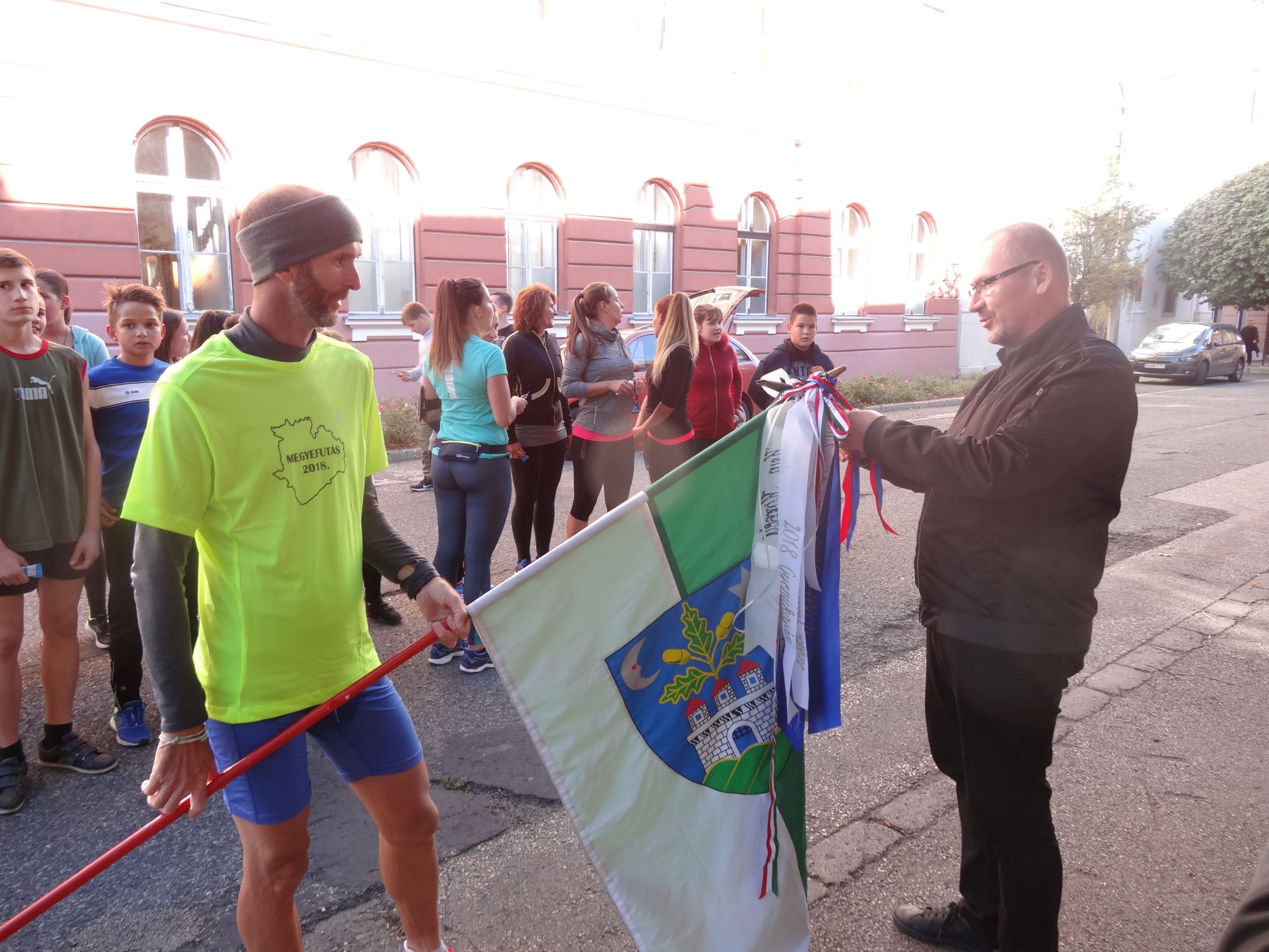 A futókat minden településen fogadják és az általuk vitt megyezászlóra szalagot kötnek fel. Így volt ez Pápán is, ahol Áldozó Tamás polgármester köszöntötte a sportolókat, akik között számos pápai futó is volt. - A Megyefutás nagyon régi hagyományokra tekint vissza, mindig örülünk annak, hogy pápaiak is csatlakoznak a kezdeményezéshez, számomra meglepetés volt, hogy a Városháza munkatársai közül is jópáran futottak a zászló után, reméljük, ezzel egy szép kezdeményezés indul el és jövőre még többen lesznek - fogalmazott a városvezető.