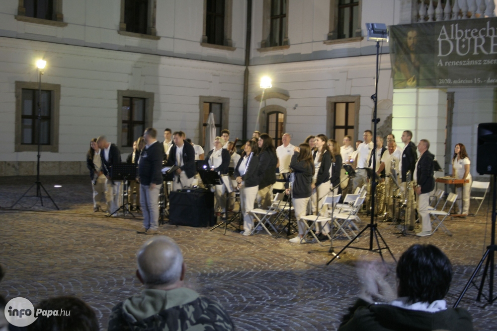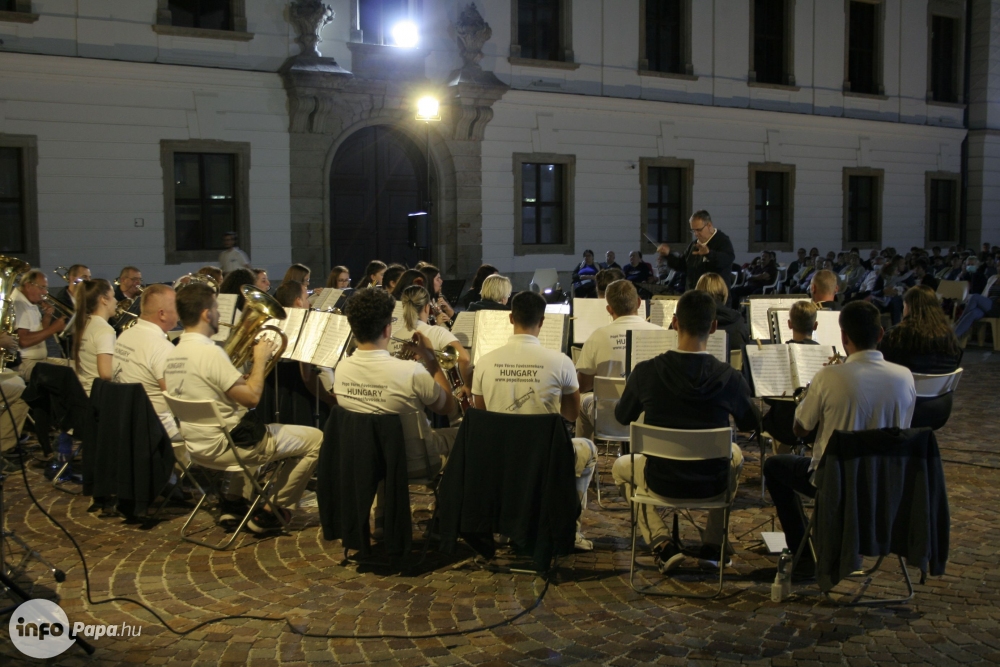 Ahogy azt Pápa Város Fúvószenekarától megszokhattuk, ezúttal is a komolyzenei darabok mellett pop slágerek és filmzenék átiratai is felcsendültek a koncerten, melynek az Esterházy-kastély udvara adott otthont.