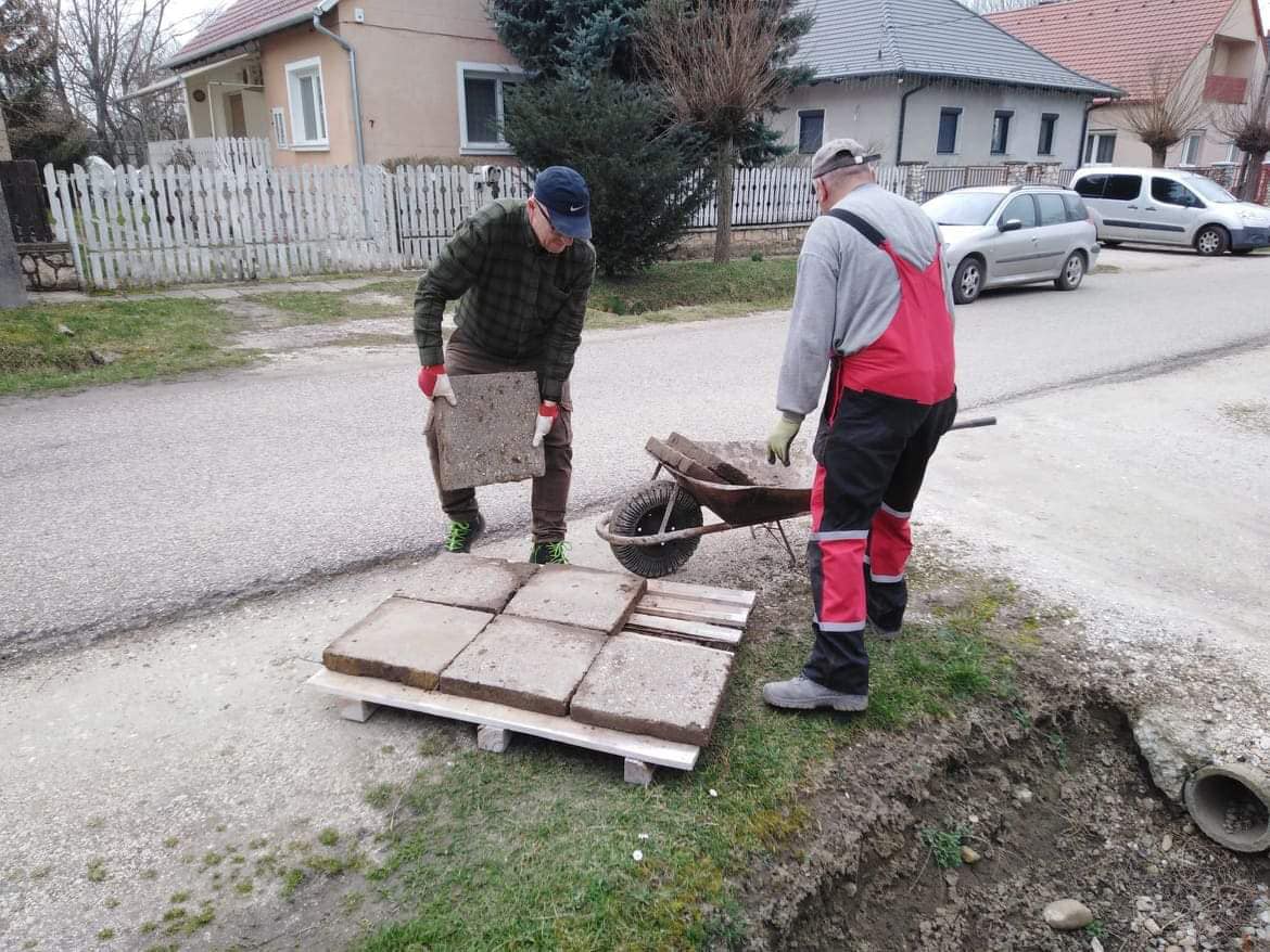 A polgármester tolta a talicskát és járdalapokat is pakolt.