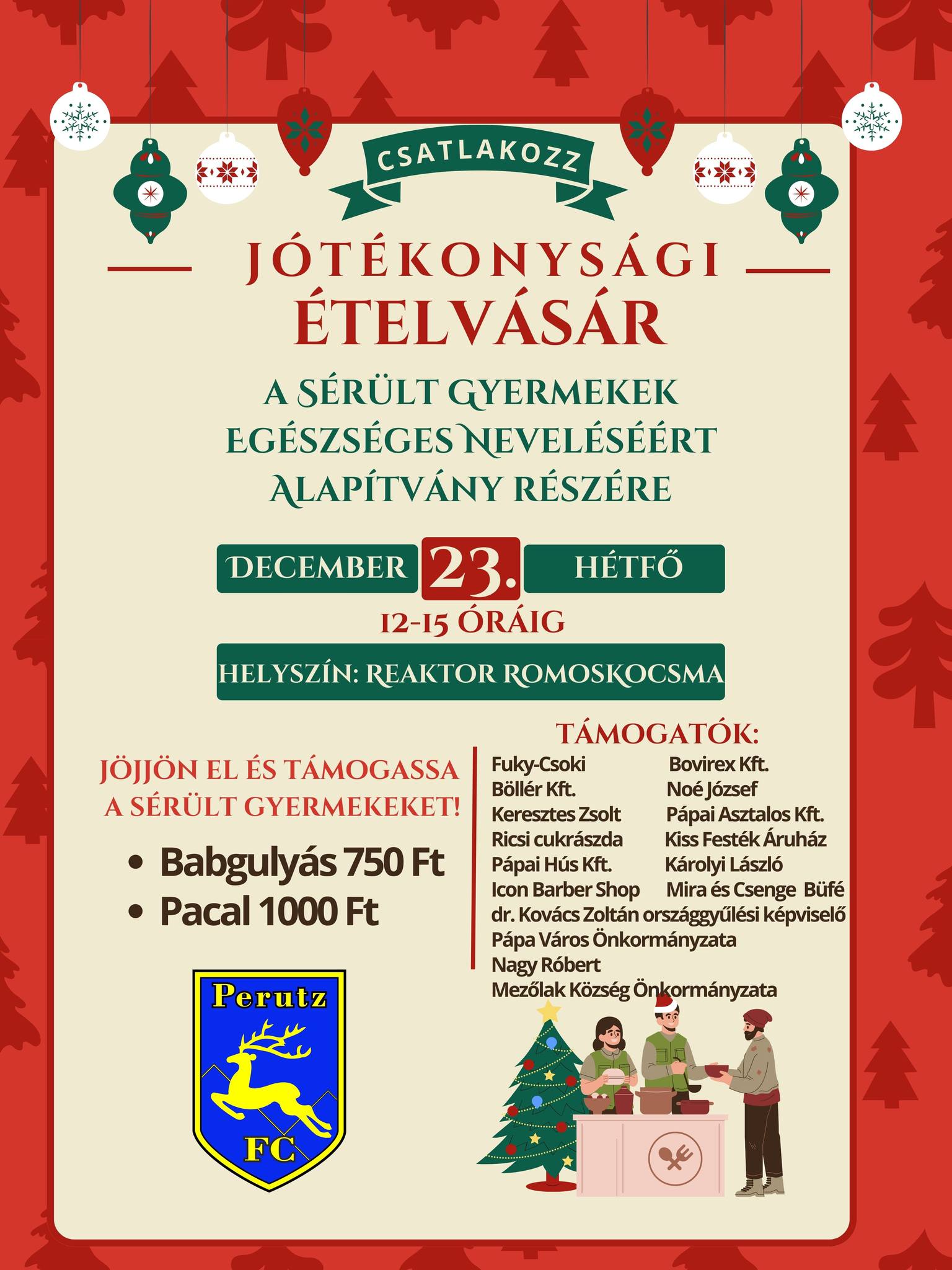Jótékonysági ételvásárt tartanak december 23-án Pápán