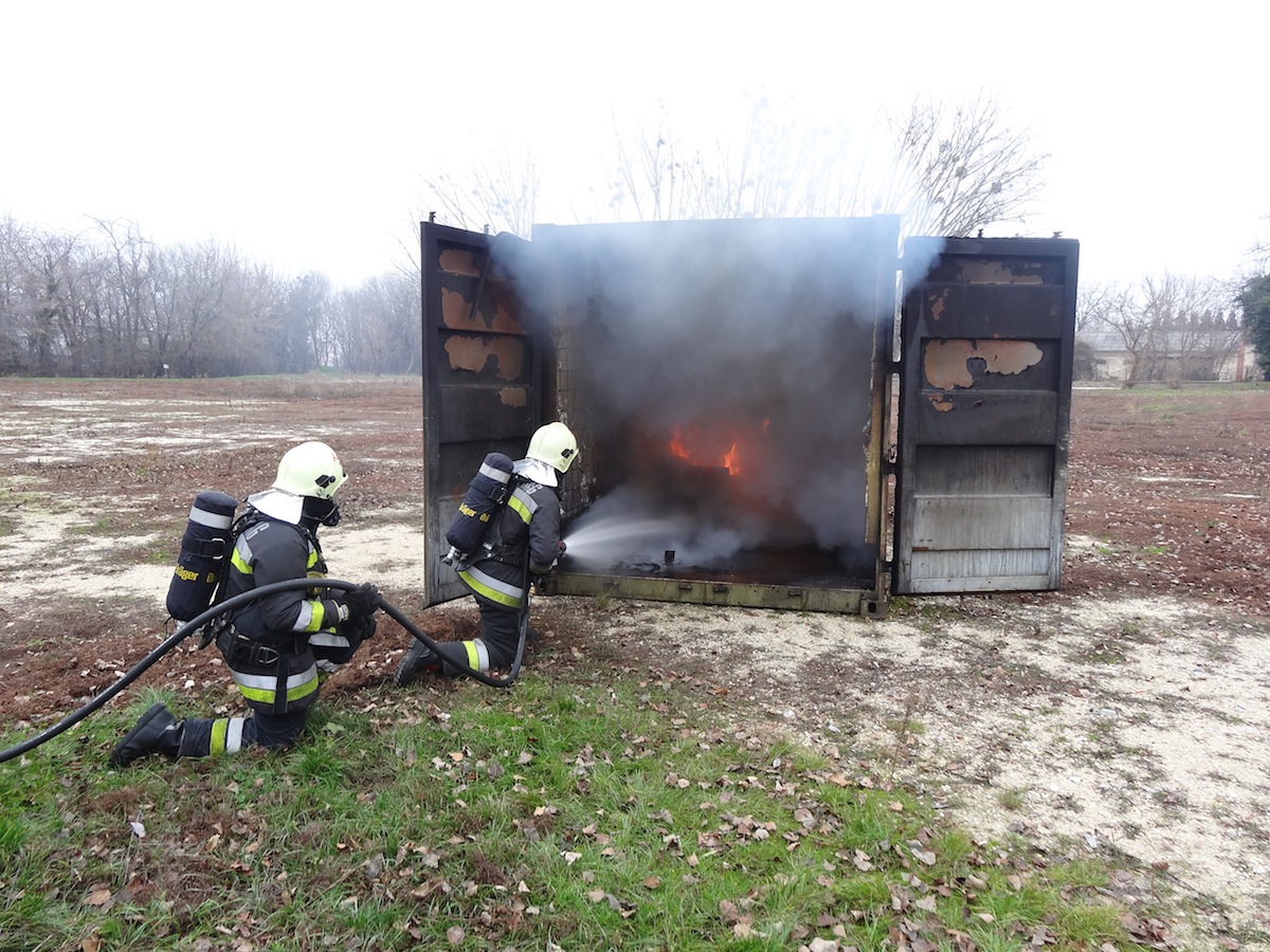 A pápai középiskolások jelenlétében zajló gyakorlaton a berendezett konténerben kapott lángra a karácsonyfa és a tűz átterjedt a szoba bútoraira is. A tüzet a pápai tűzoltók természetesen el is oltották.