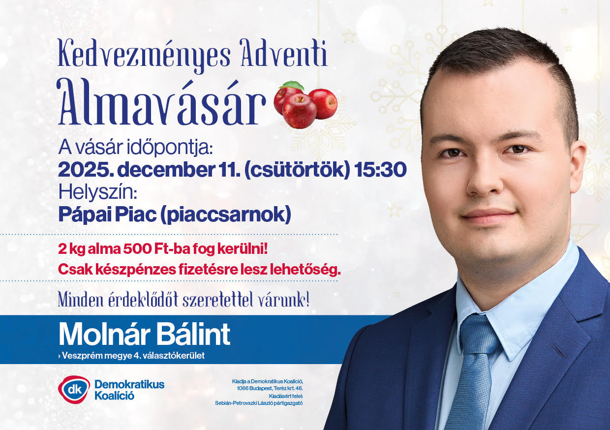 Nem ez az első alkalom, hogy ilyenfajta akciót szervez a Demokratikus Koalíció, januárban még Gyurcsány Ferenc részvételével árusítottak kedvezményes árú gyümölcsöt városunkban. Most a helyi szervezet kezdeményezésében valósul meg az akció. Molnár Bálint országgyűlési képviselőjelölt elmondta, az adventi időszakban kiemelten fontos, hogy segítséget kapjanak azok, akik nehezebb körülmények között élnek.