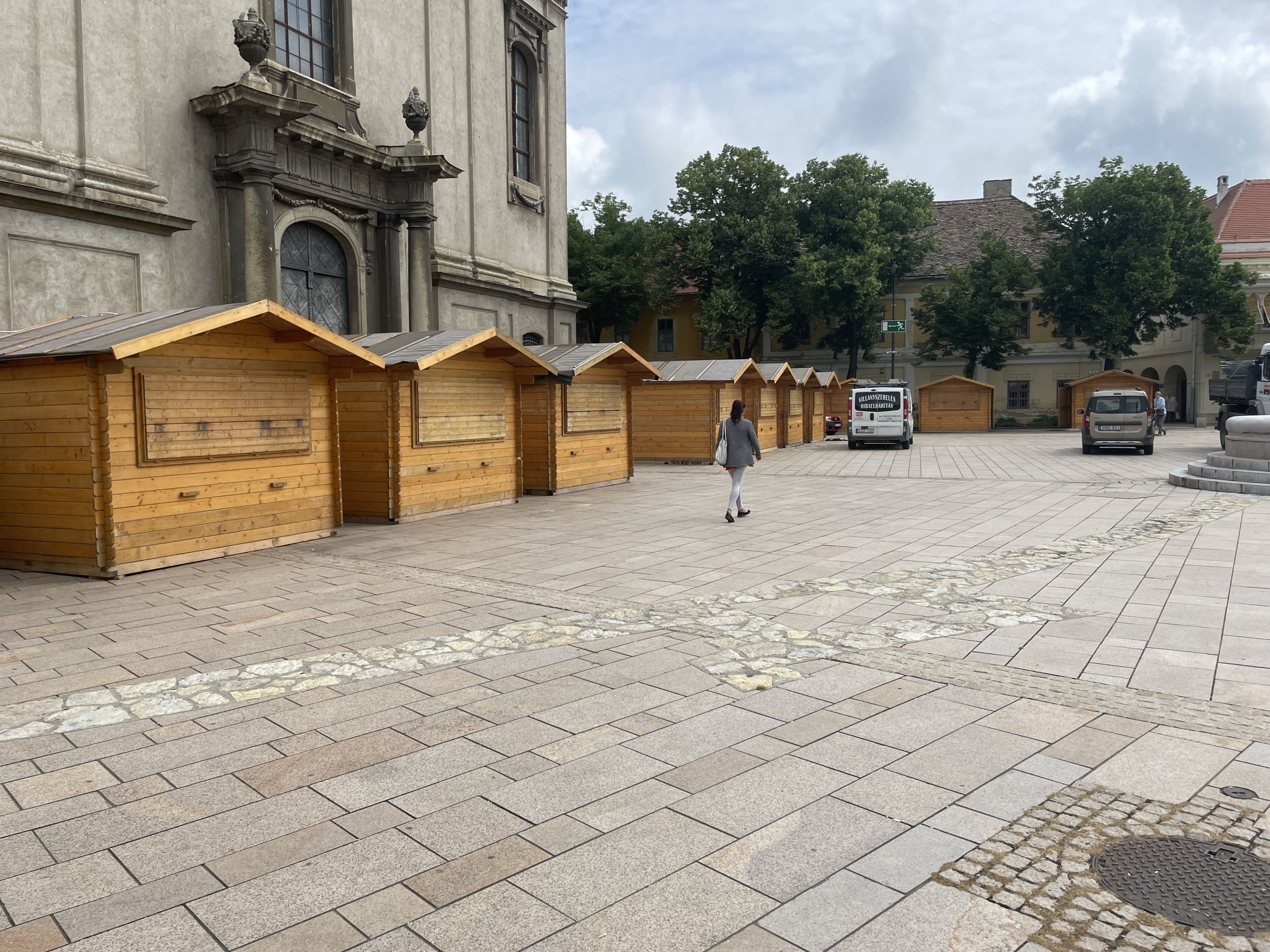Közben javában zajlik már a holnap kezdődő Játékfesztivál előkészítése, épül a színpad, helyükre kerülnek a kivetítők, a faházakat pedig már fel is állították.