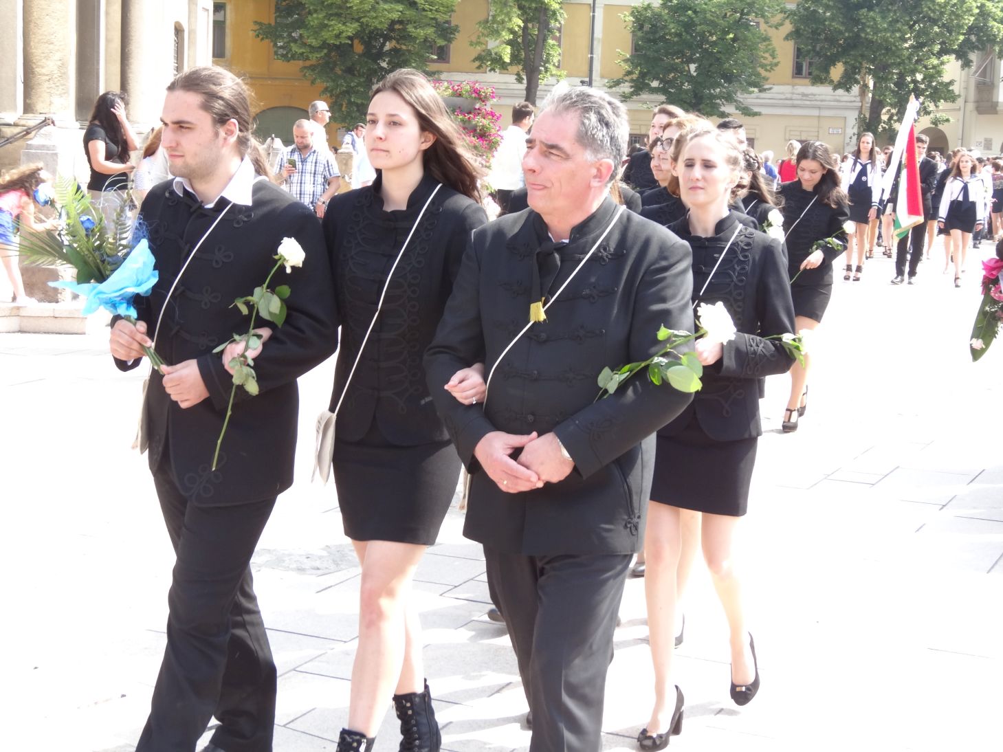 A ballagó diákság nevében Lucza Levente a Pápai Református Kollégium Gimnáziumának végzős diákja búcsúzott. A Felvidékről származó diák azt mondta, azért jött Pápára tanulni, hogy magyar iskolában, magyar nyelven tanulhasson, hogy még inkább magyar lehessen. - Immáron magyar állampolgárként büszkén vallom, hogy nemcsak magyar polgár lettem, de egy kicsit pápai is - mondta a diák köszönetet mondva a szülőknek, nagyszülőknek és tanároknak azért, hogy itt lehetnek ma ezen az alkalmon.