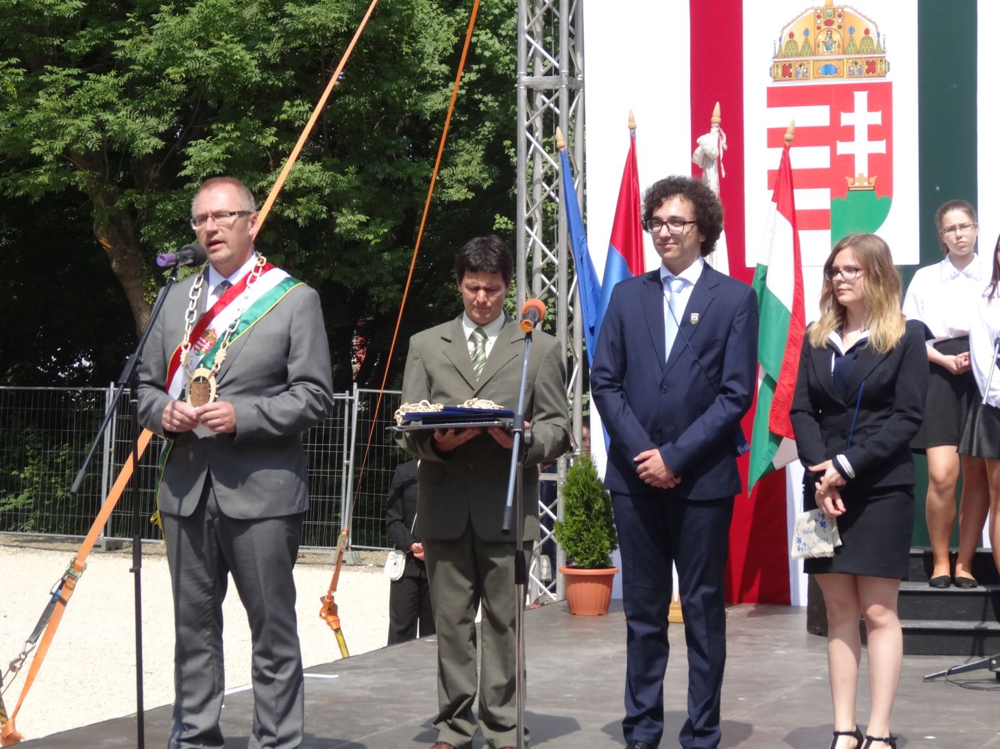 Az esemény következő momentuma nem évről-évre visszatérő pillanat. A ballagó diákság sok jó eredménye közül is kiemelkedik Döbröntei Dávid Bence a matematika OKTV-n elért első helyezése. Ezt a teljesítményt elismerve Pro Publico - A közért városi kitüntetést adott át Áldozó Tamás Döbröntei Dávidnak.