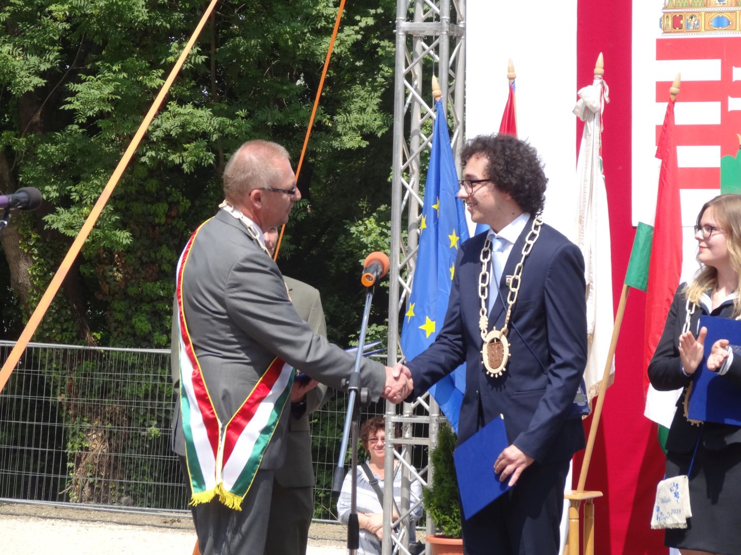 A beszédeket követően Áldozó Tamás polgármester - a hagyományokhoz hűen - minden ballagó diákot Pápa város felnőtt polgárai közé fogadott. Ebből az alkalomból a polgármester két végzősnek, Döbröntei Dávid Bencének, a Türr István Gimnázium és Kollégium és Polhammer Alexandrának, a PSZC Jókai Mór Közgazdasági Szakgimnáziuma és Kollégiuma végzős diákjának átadta az eseményt szimbolizáló, a város címerével díszített láncot és emléklapot.