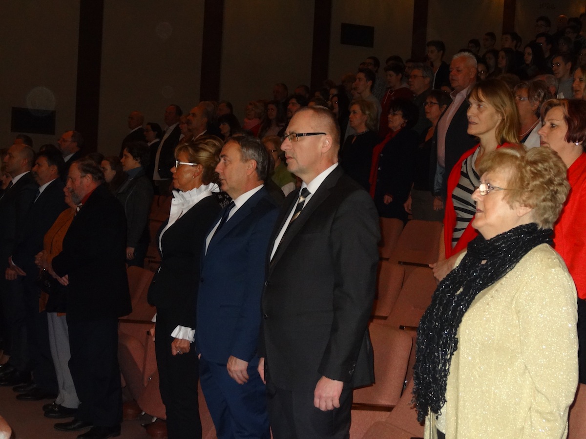 A Himnusz közös eléneklését követően Áldozó Tamás polgármester mondott ünnepi beszédet. - Ez egy olyan nap, amikor hangsúlyosan keressük a válaszokat az olyan kérdésekre, miszerint kik is vagyunk, honnan jöttünk, mit veszítettünk és mivel vagyunk gazdagok, valamint tartunk-e egyáltalán valamilyen határozott irányba. Keressük a válaszokat, mondtam, de ez így talán túl általános; van, aki keresi a válaszokat, van, aki számol a felelősségével, van, aki mérleget készít. Mi itt, és sokan azok, akik nem jöhettek el, jó eséllyel azok közé tartozunk, akik válaszokat keresünk, akik az anyanyelv, a művészetek és a hagyományok dimenzióiban látjuk értelmét az életünknek. Tudjuk a felelősségünket egyenként, de vajon hogyan teljesítünk mi, városlakók közösségként; mi kerül a mérleg serpenyőjébe, ha az értékteremtés és értékközvetítés intézményesült formáit vizsgáljuk? - tette fel a kérdést beszédében a városvezető.
