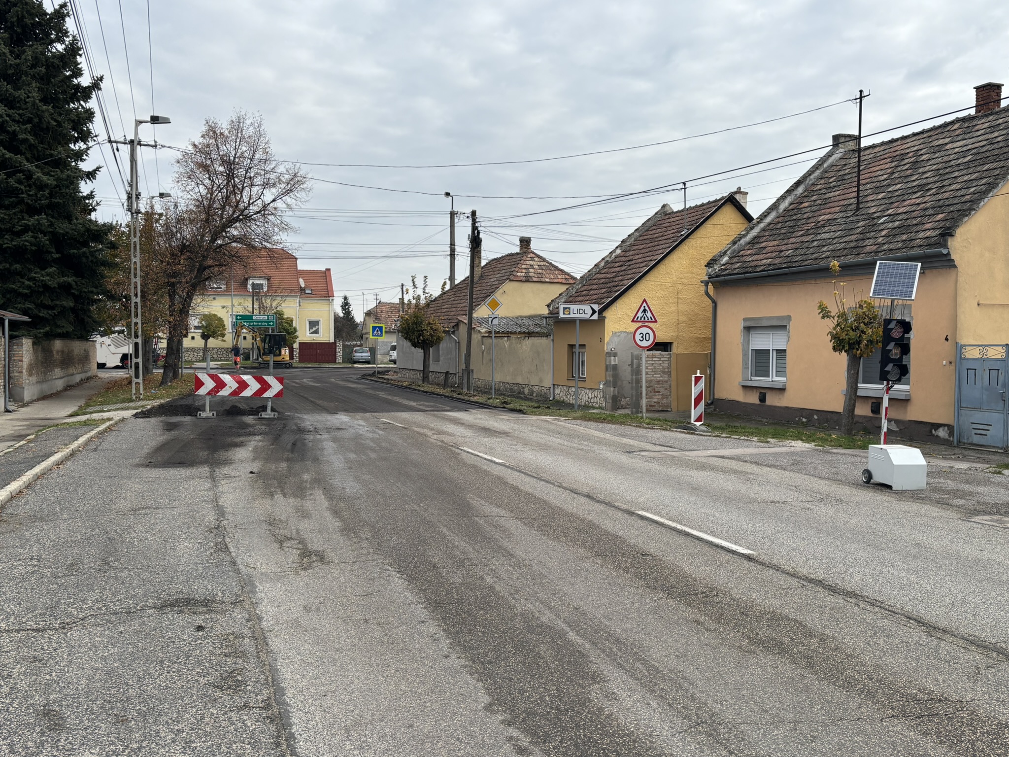 A Somlai úton szintén félpályán halad a forgalom, itt jelzőlámpák irányítják a közlekedést.