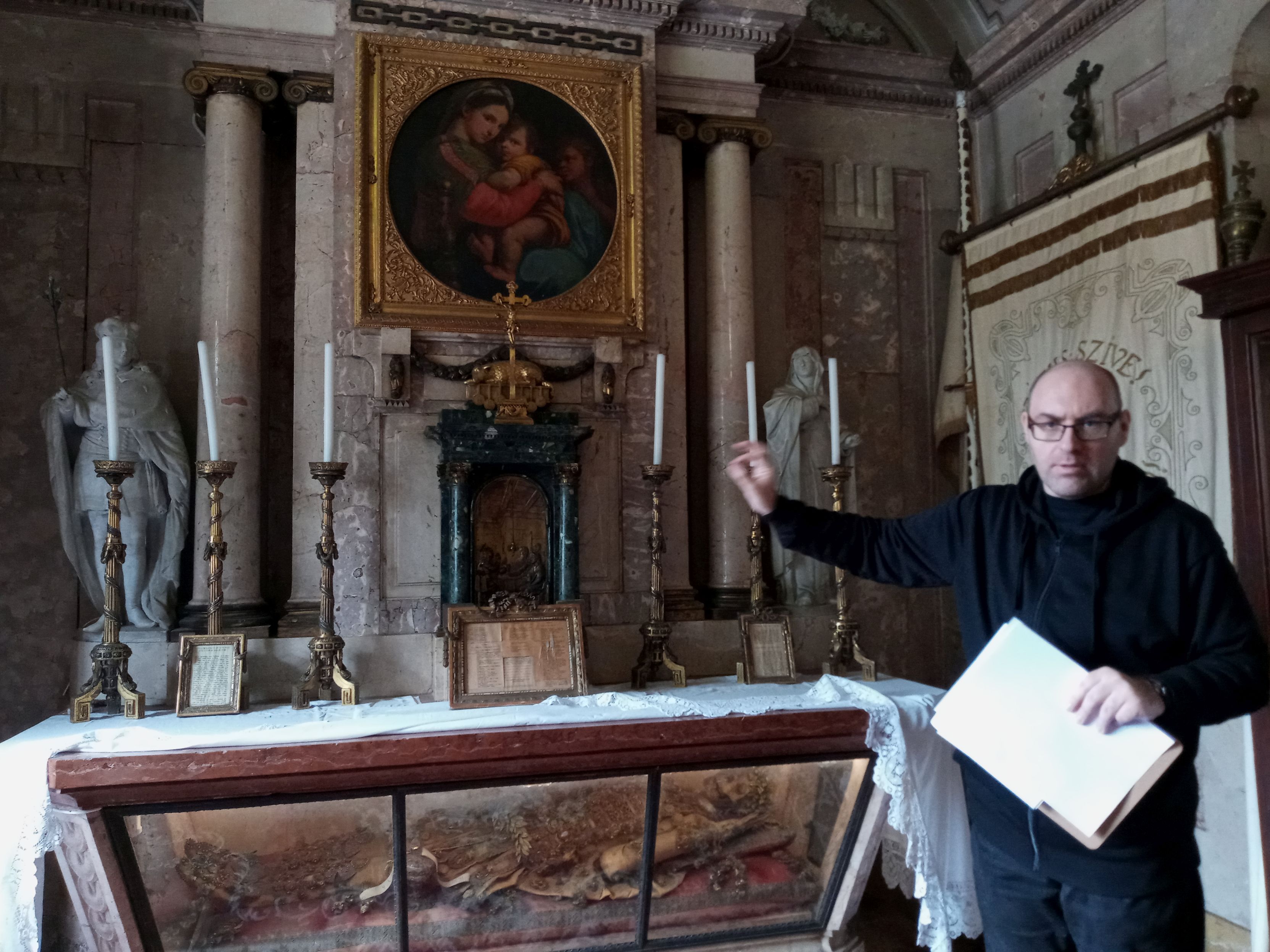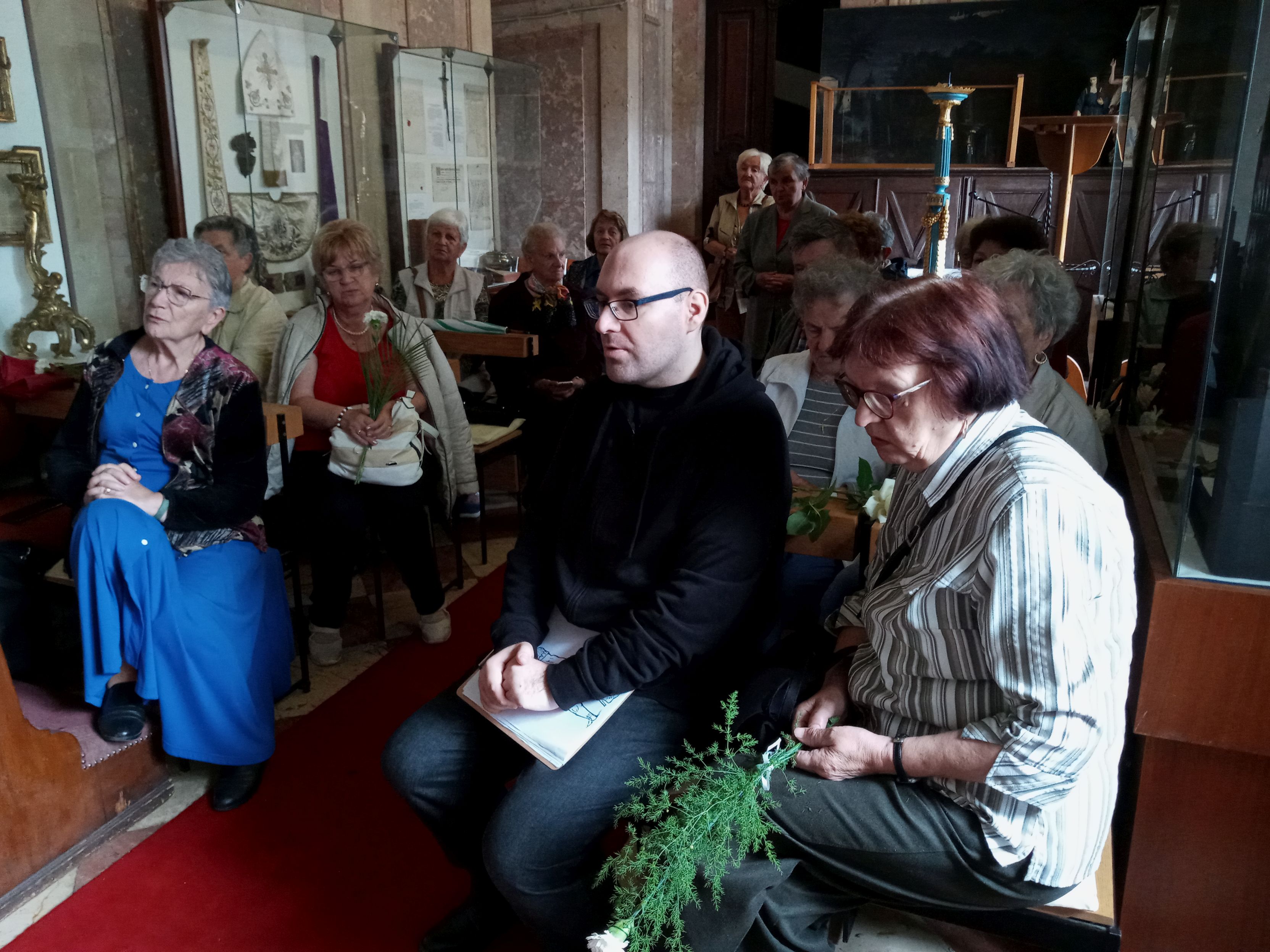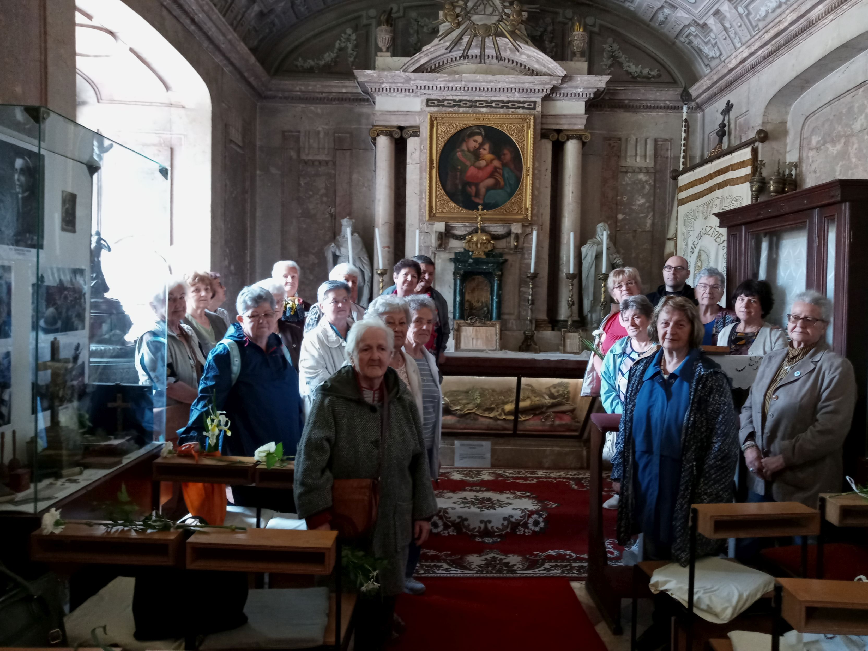 A PVE kis civil közössége a reményt, a békességet, a tisztaságot jelképező fehér színű virágokat helyezett el a 240 éve, 1783-ban Pápára került, üvegkoporsóban nyugvó, hitvalló légionárius földi maradványainál.