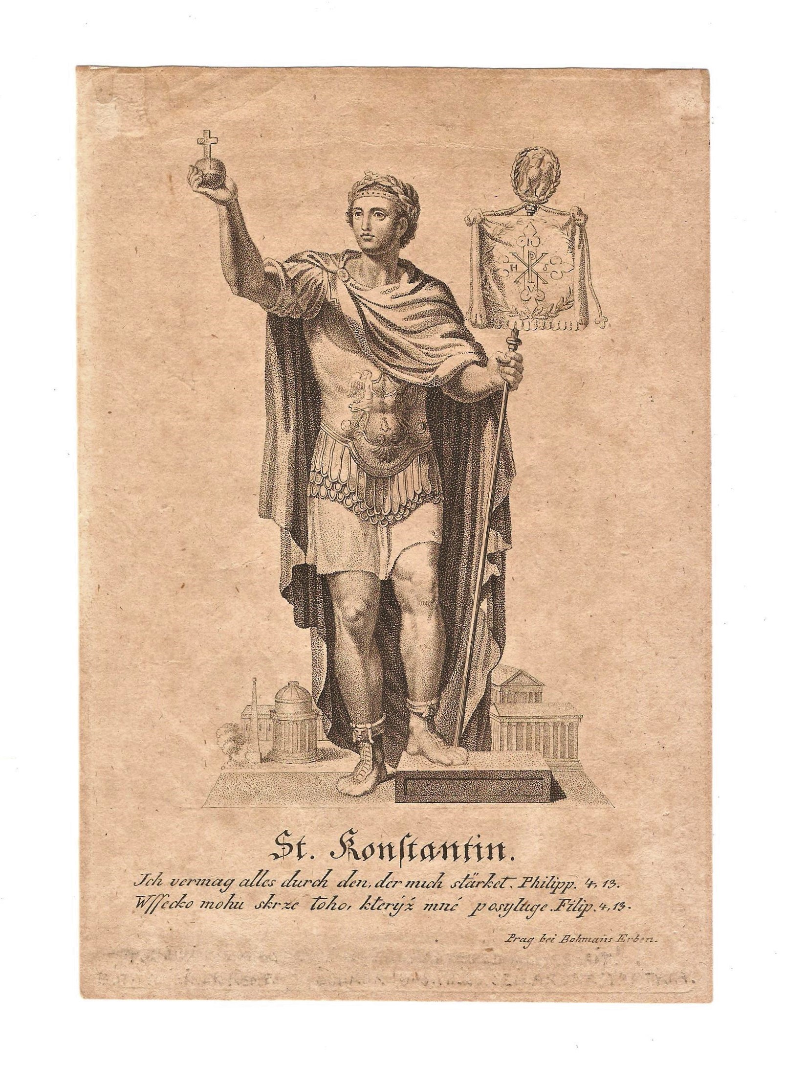 Este álmot látott, melyben Krisztus megmagyarázta a látomást. A mulviusi csata előtti éjszaka pedig azt a tanácsot kapta, hogy festesse a Krisztus-monogramot katonái pajzsára. „Ebben a jelben győzni fogsz!” Konstantinusz a tanács szerint cselekedett, s az ígéret beteljesedett.