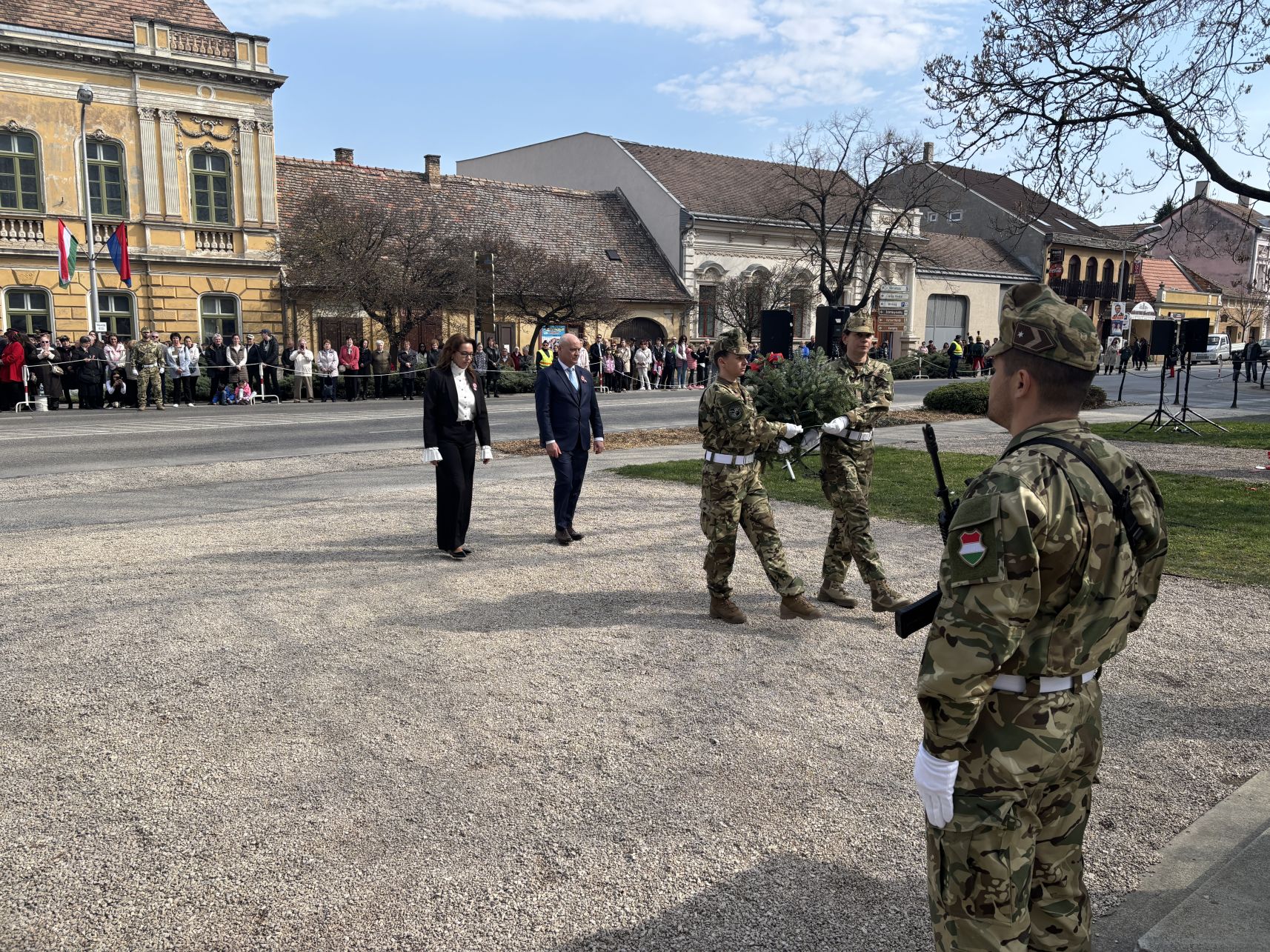 Pápa Város Önkormányzata ünnepi megemlékezést szervezett március 15-én a Március 15. téren, az 1848–49-es forradalom és szabadságharc 178. évfordulója alkalmából.